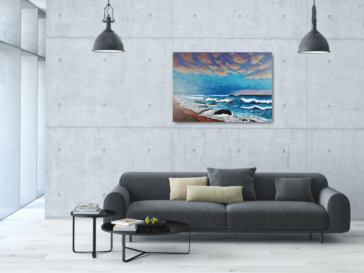 Jemné večerní vlny - originální obraz moře, 70×50 cm