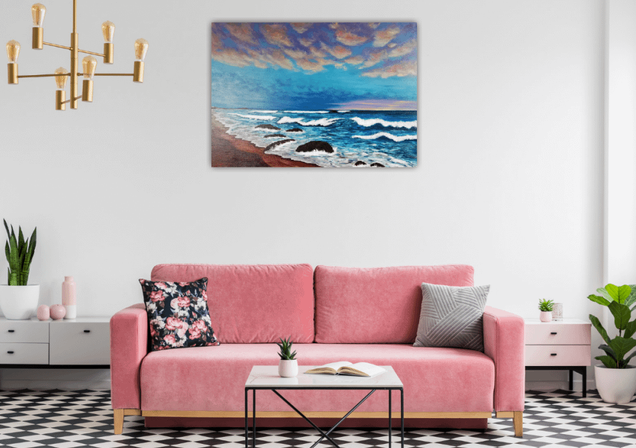 Originální olejomalba moře, mořská scenérie na na plátně.