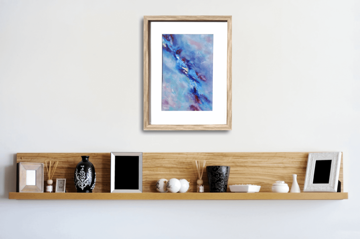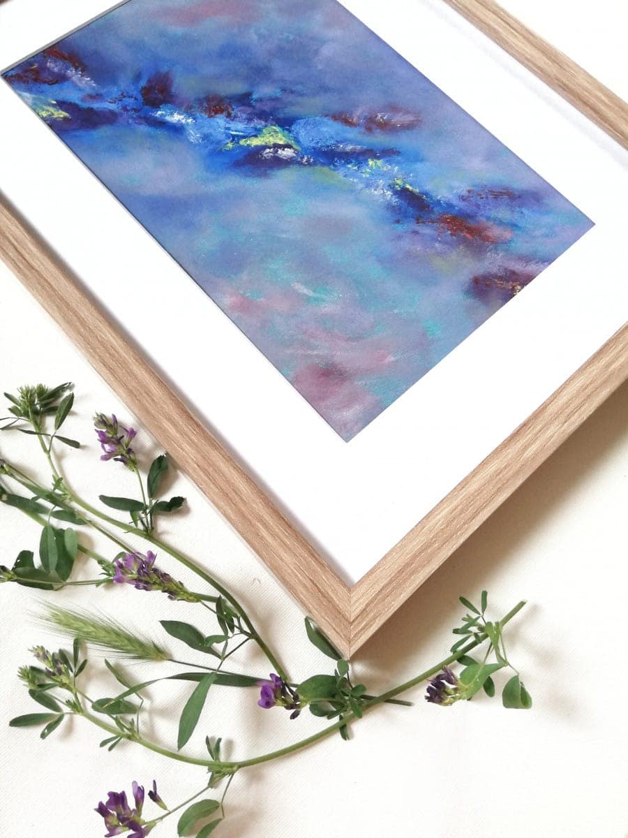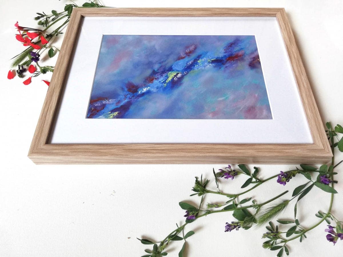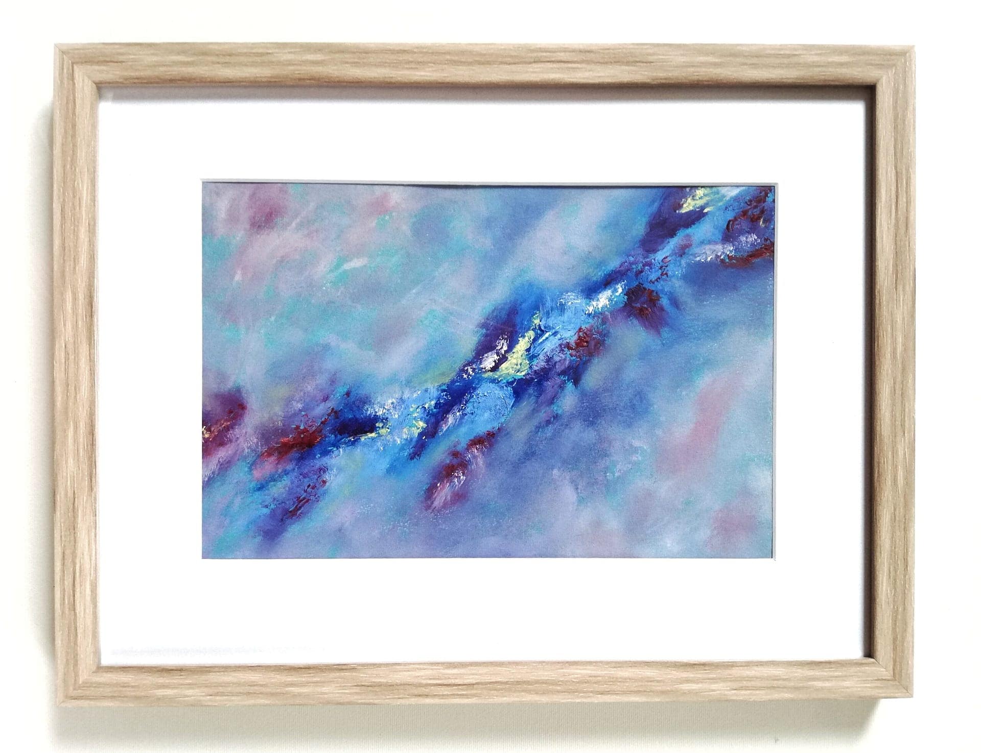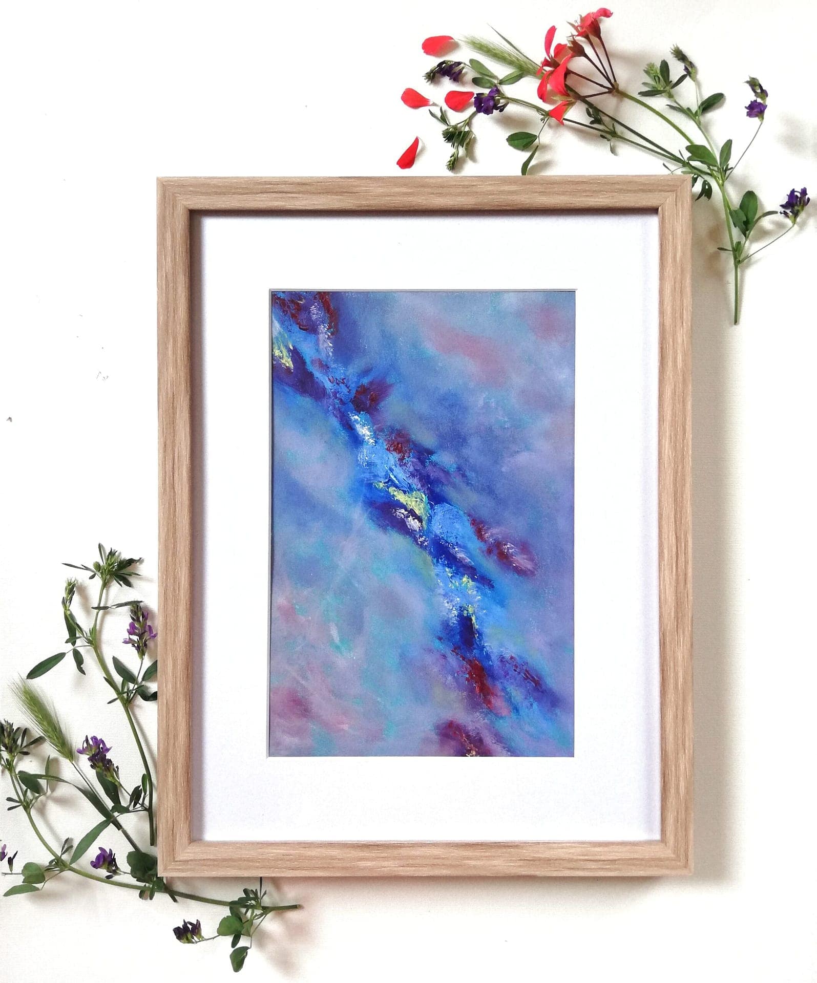 Originální, moderní akrylová malba ve fialových, modrých a červených barvách.
