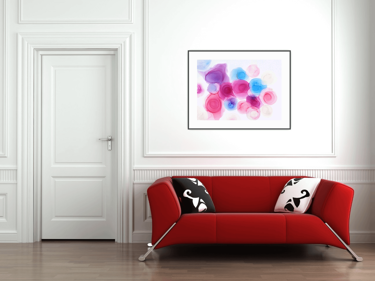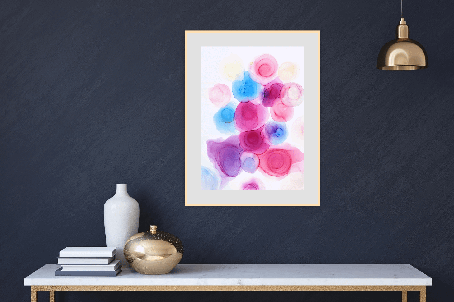 Skvělý výběr pokud se Vám líbí moderní abstraktní umění. Vypadá hezky zarámovaný s paspartou.