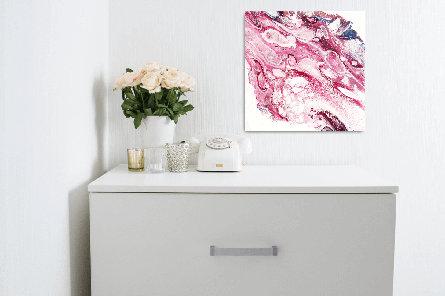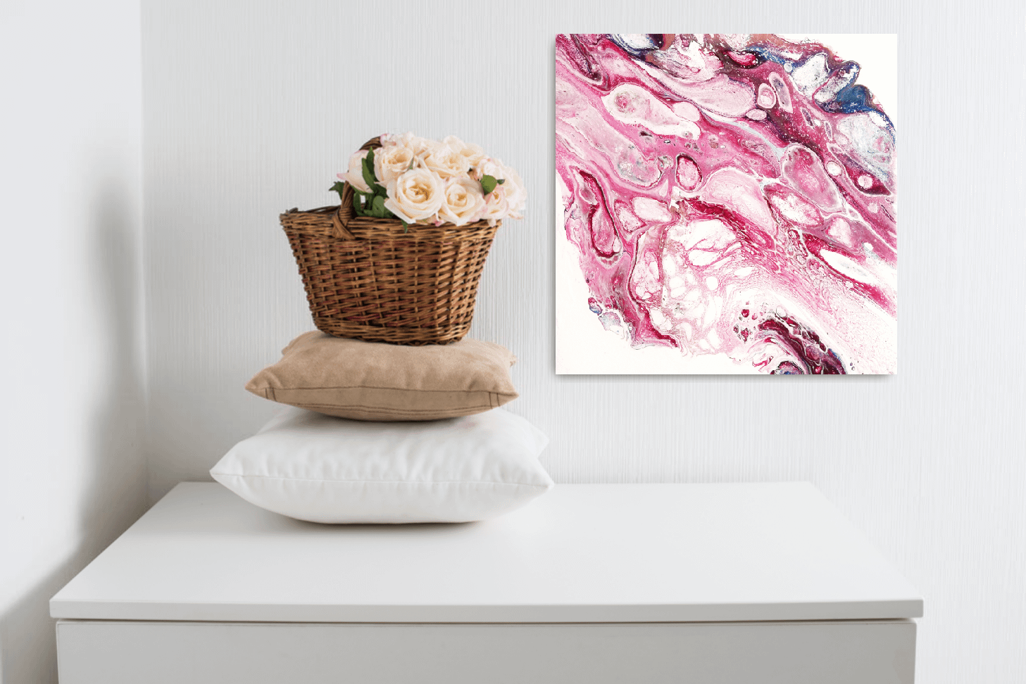 Originální akrylový obraz na plátně. Abstraktní malba v odstínech růžové barvy.