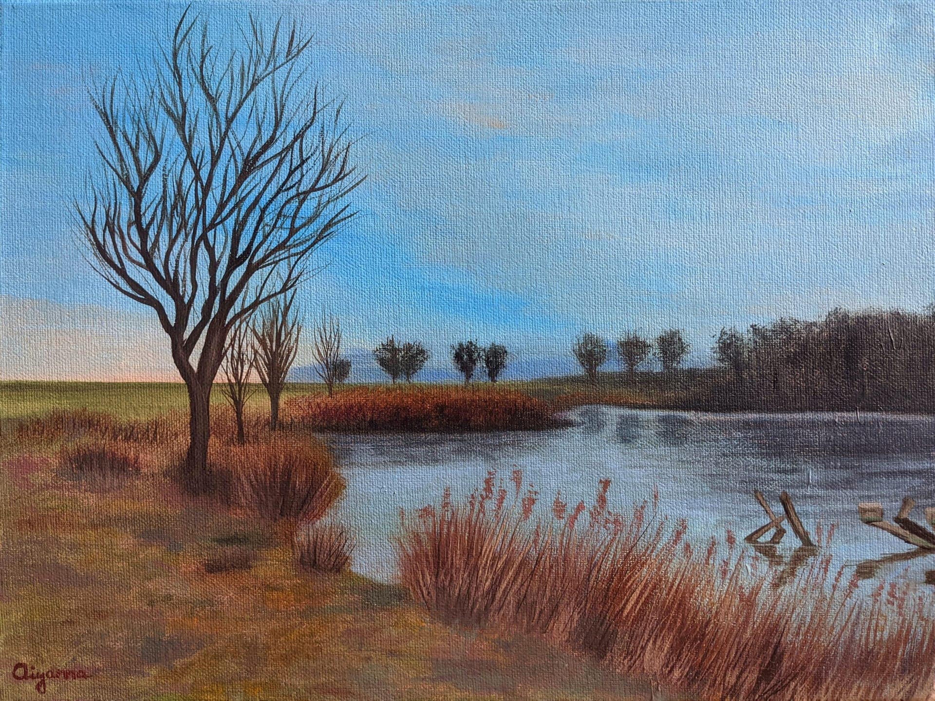 Painting is inspired by my walks near Ponětovický rybník – a fish pond near Brno.