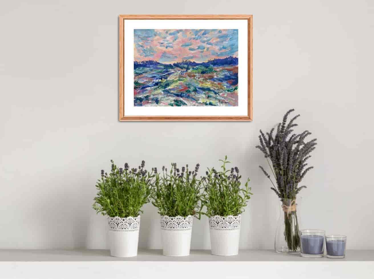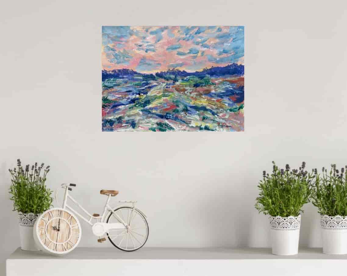 The painting is varnished (2 layers) for protection against UV-rays and dust.