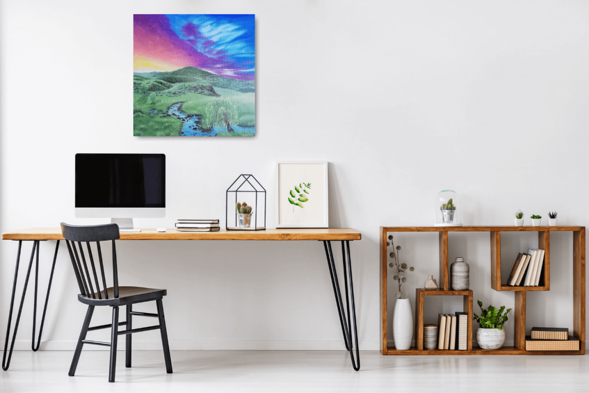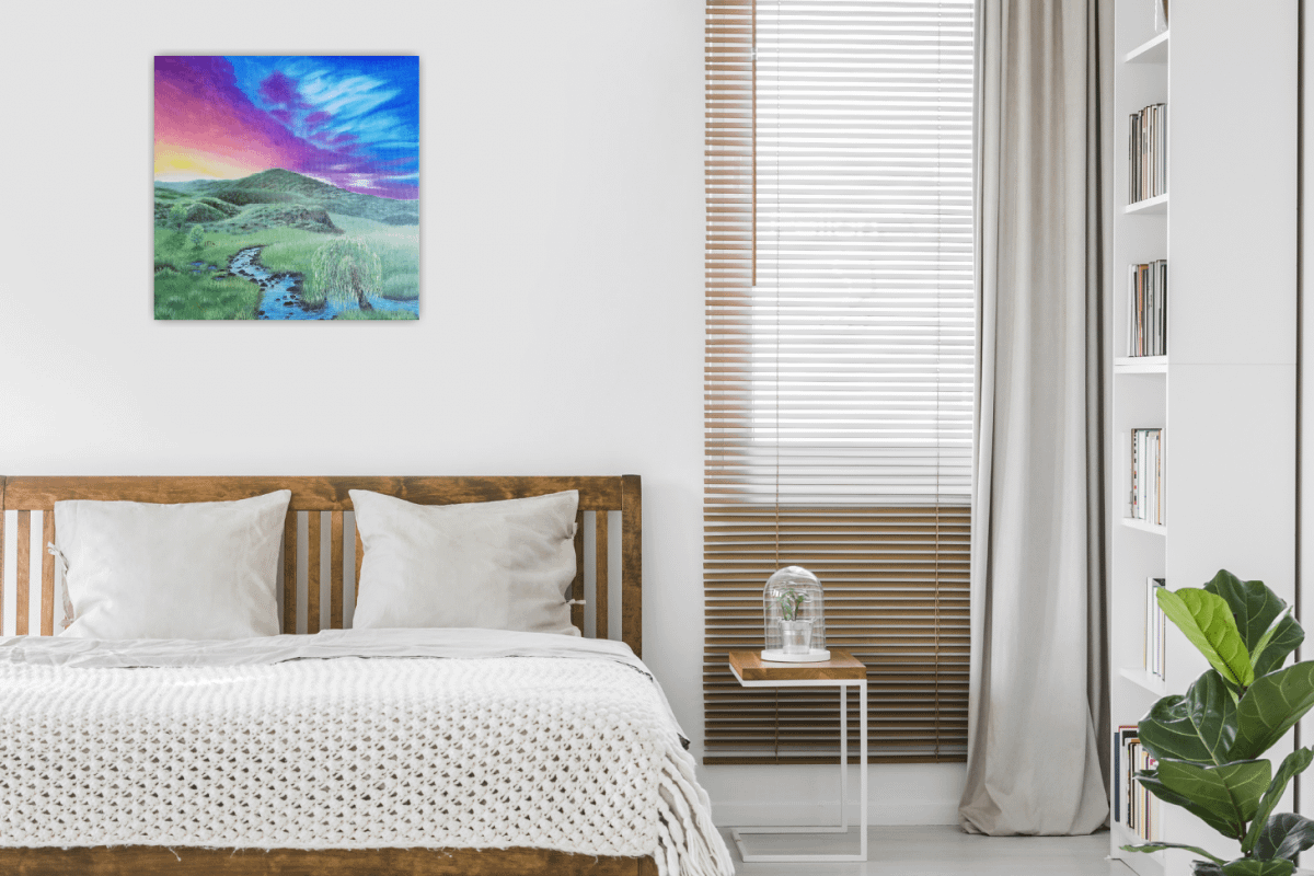 Material: canvas stretched on a deep edge wooden frame, oil paint. Hanging hardware included, you can hang it straight on the wall.