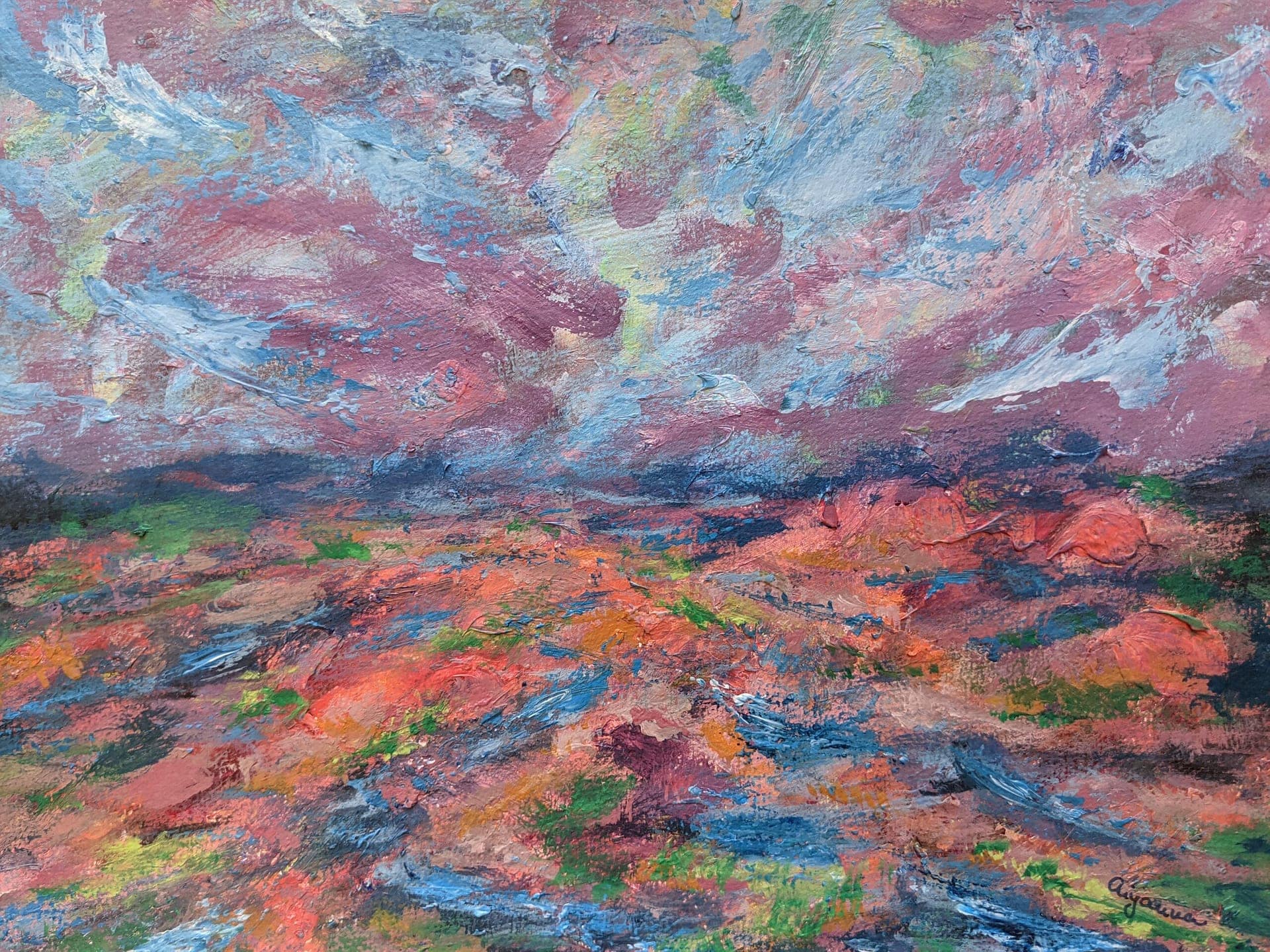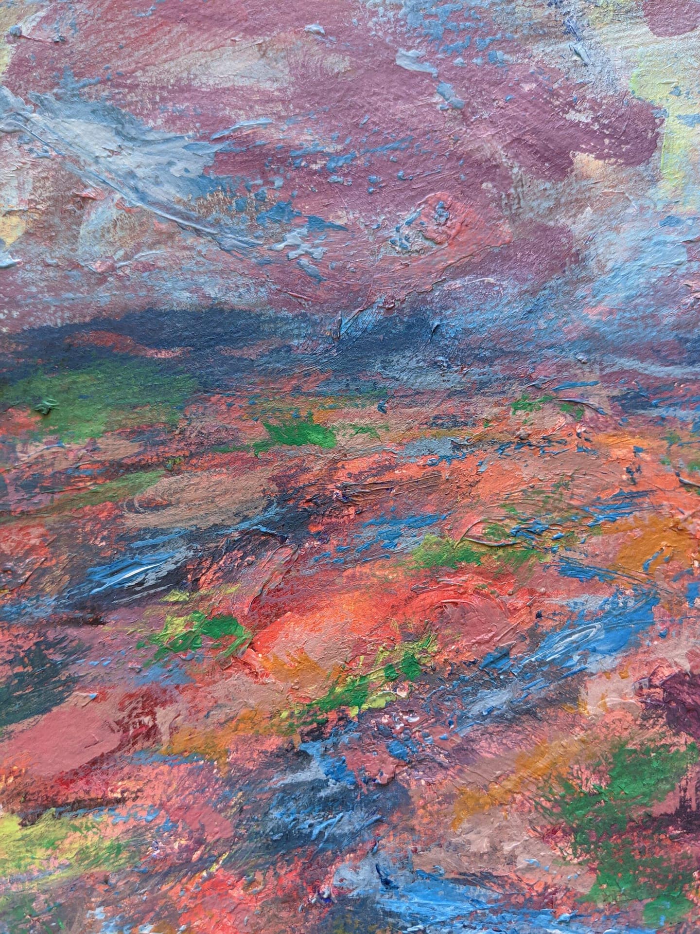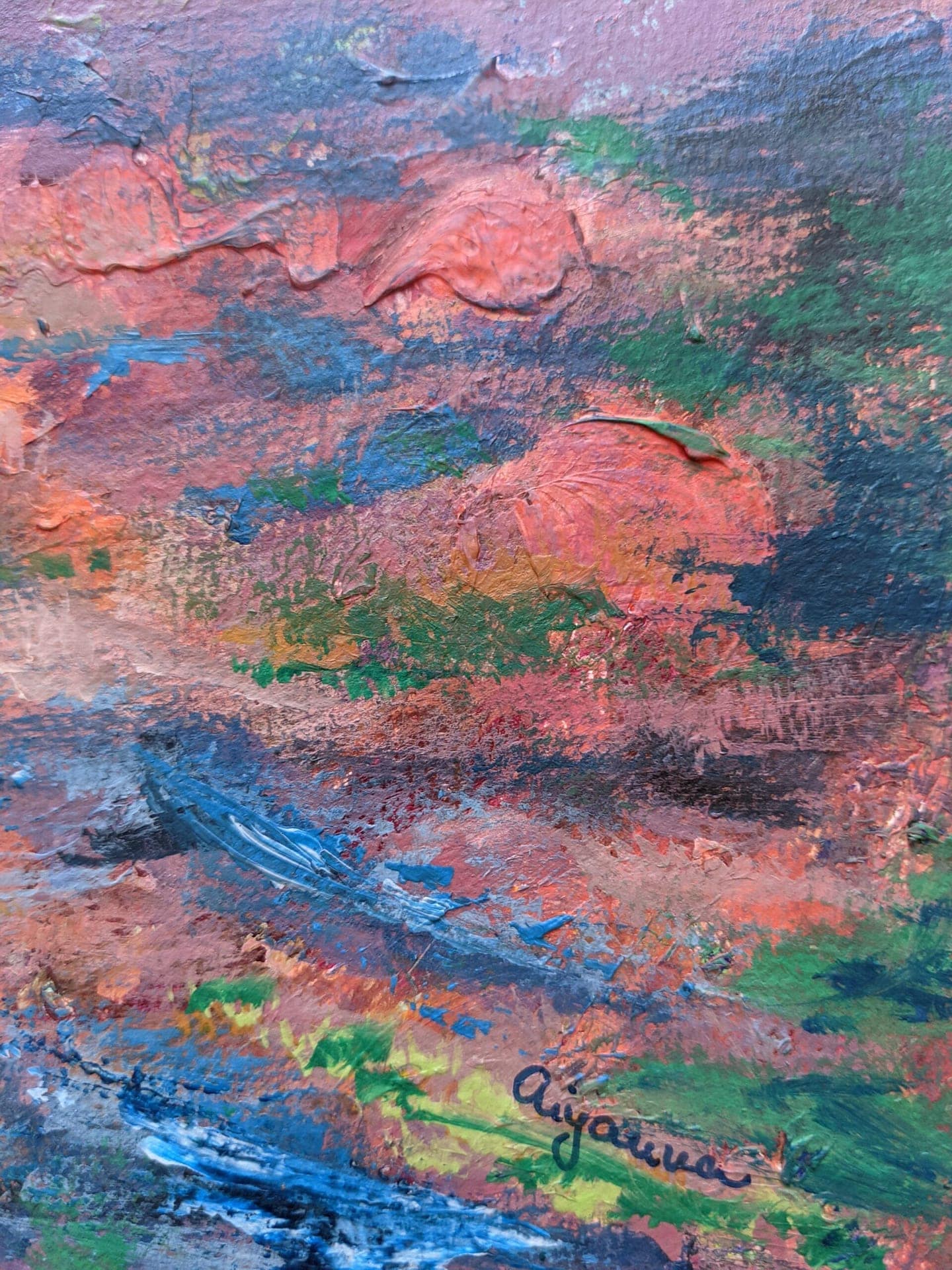 Technique: hand-painted original artwork, palette knife, and brushes; acrylic paint on paper.