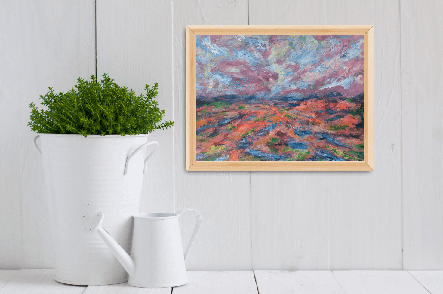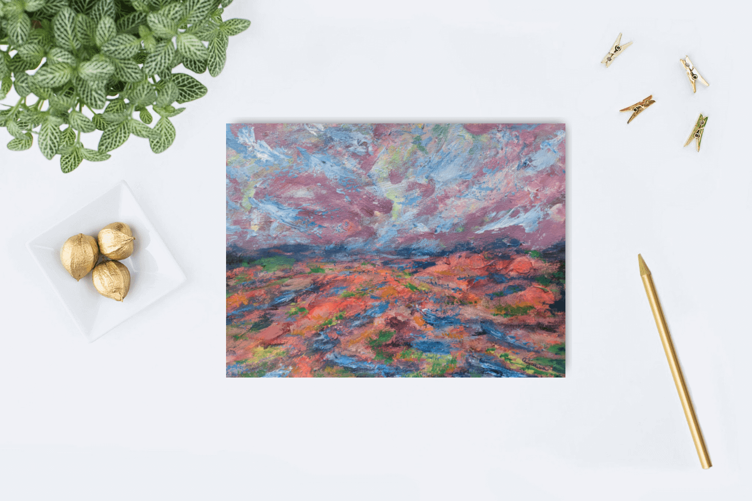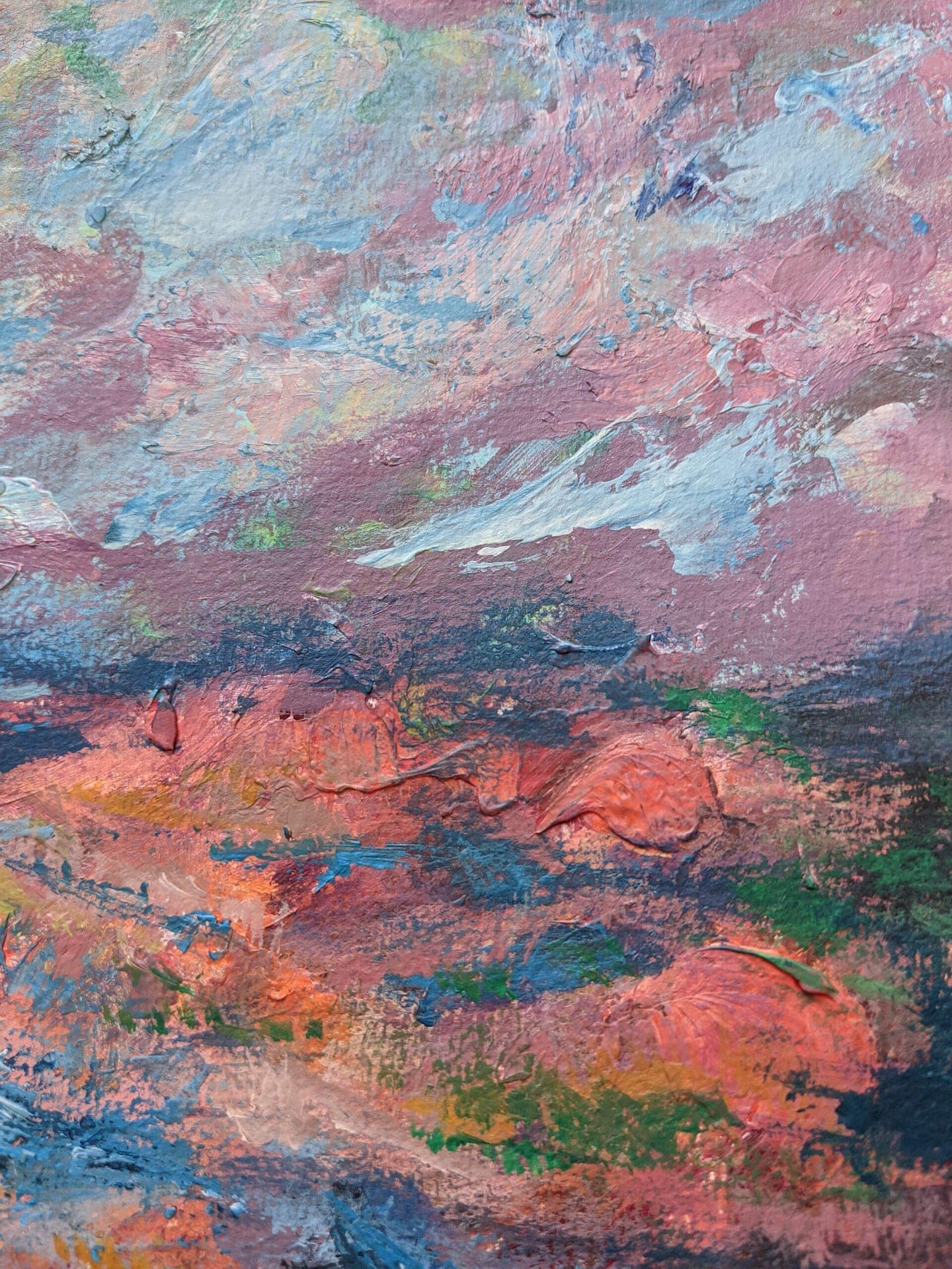 Technique: hand-painted original artwork, palette knife, and brushes; acrylic paint on paper.