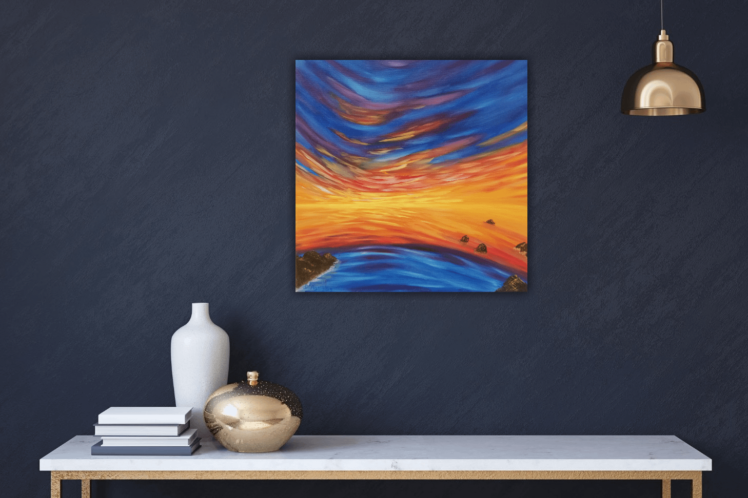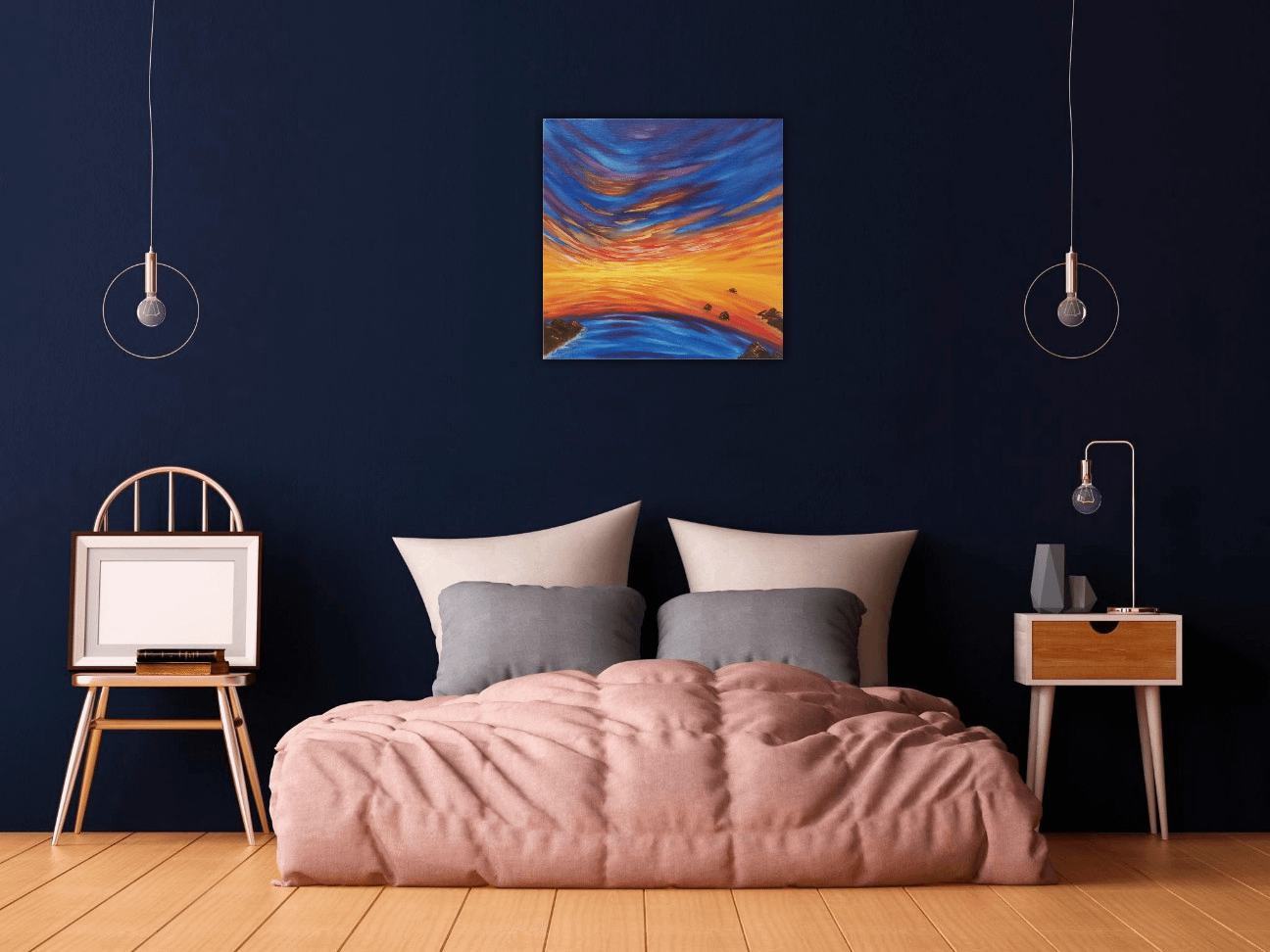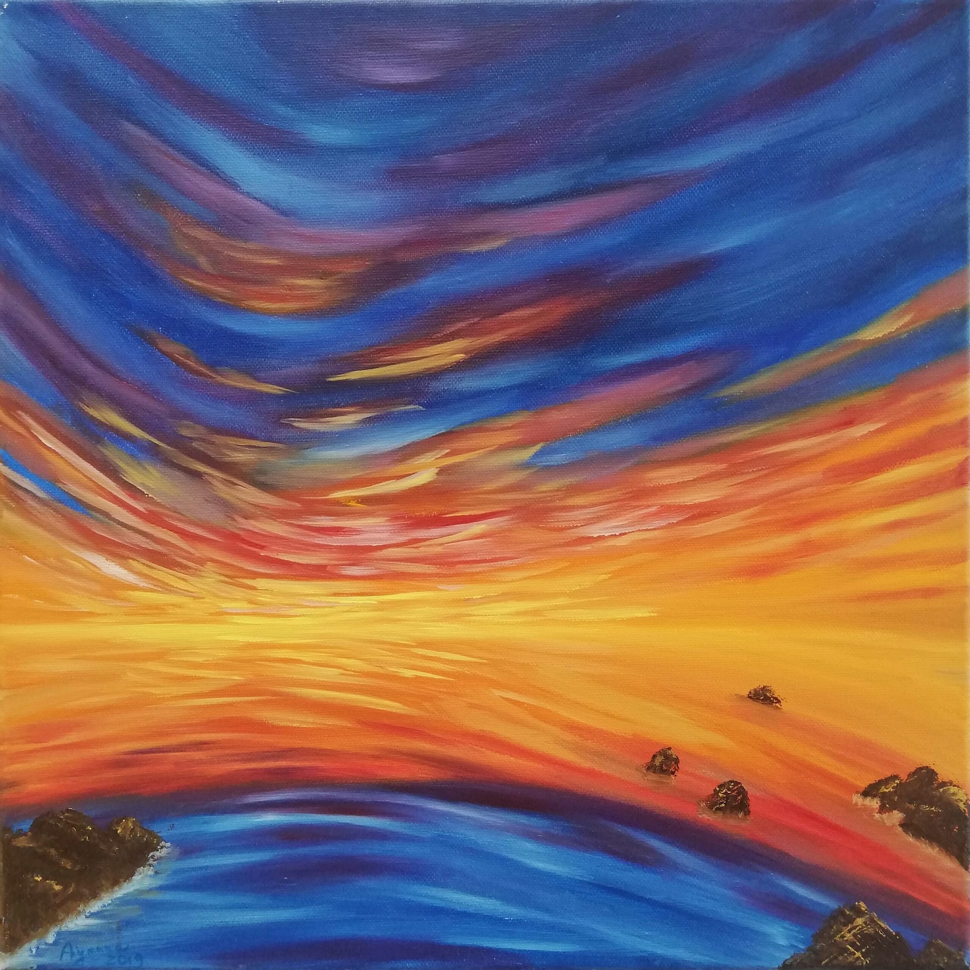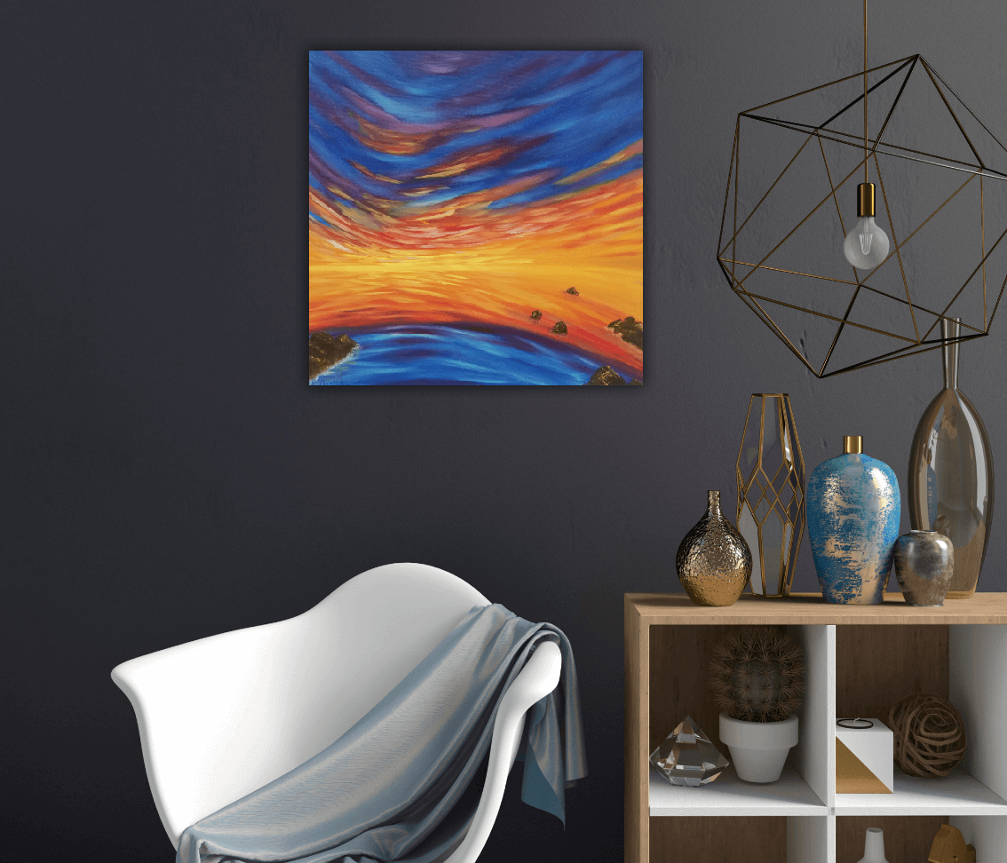 Painted on a gallery a stretched canvas. Hanging hardware included.