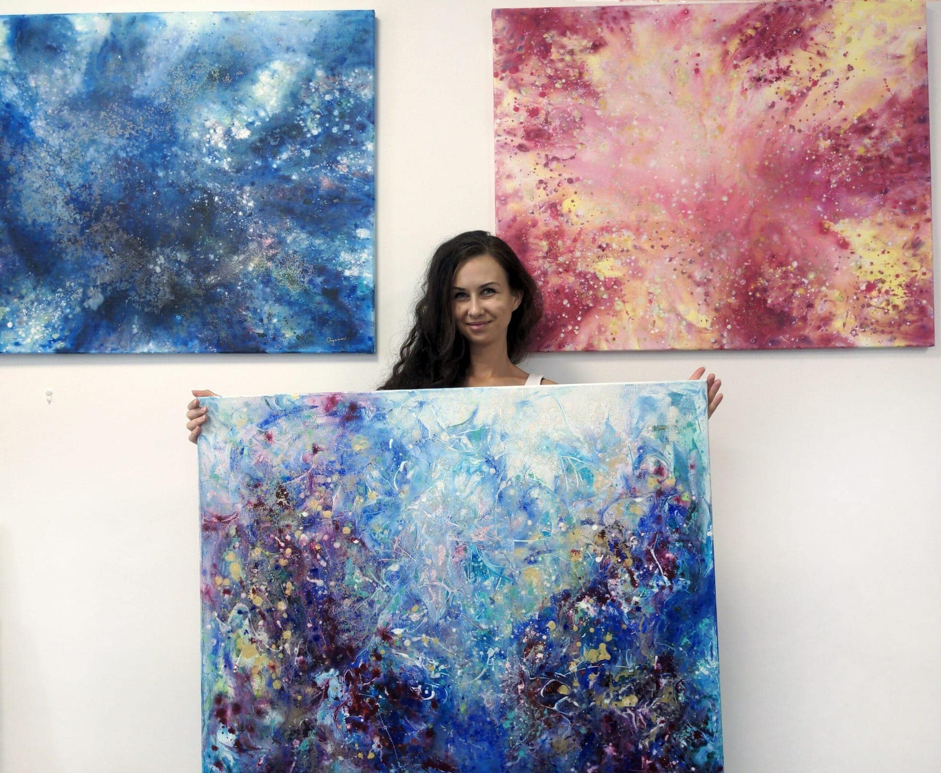 Material: canvas stretched on a wooden frame, acrylic paint, alcohol ink, golden paint, glossy varnish.