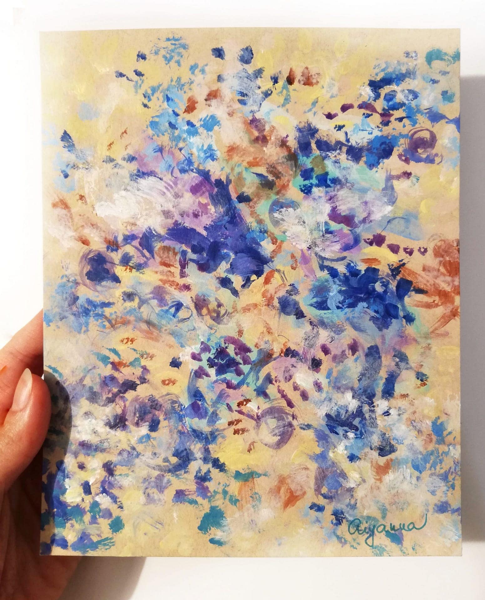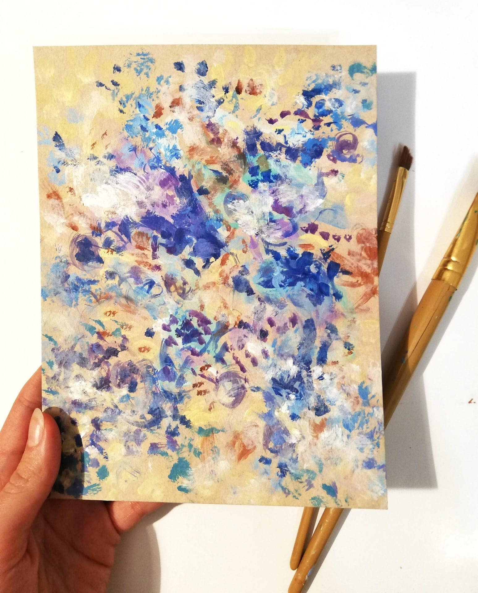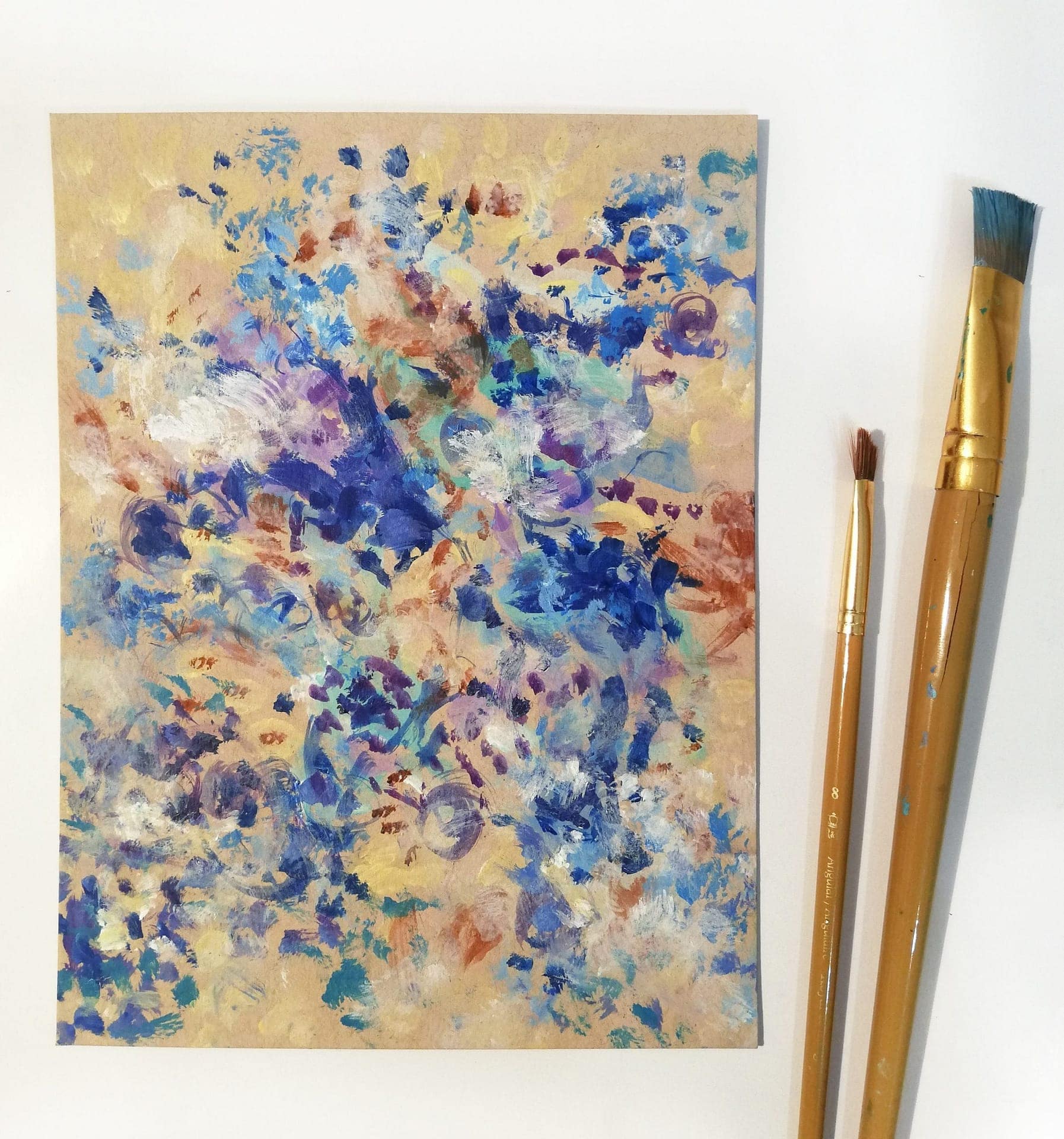 Small and cute abstract painting in floral patterns on watercolour paper.