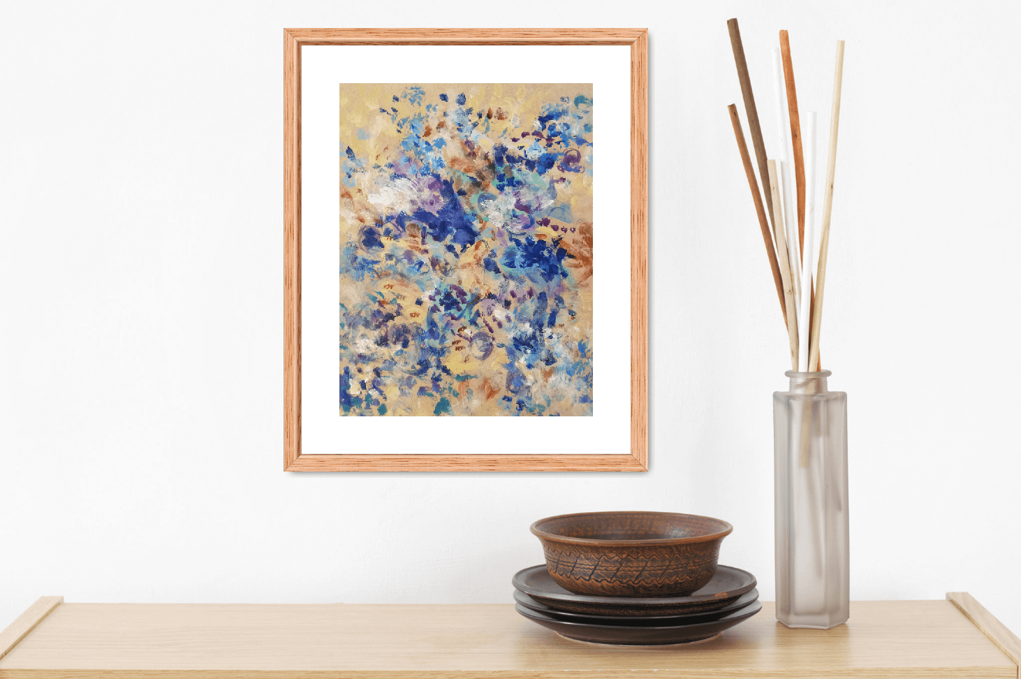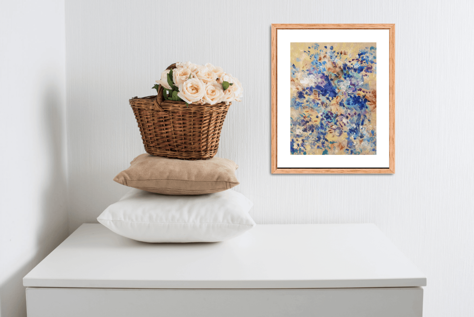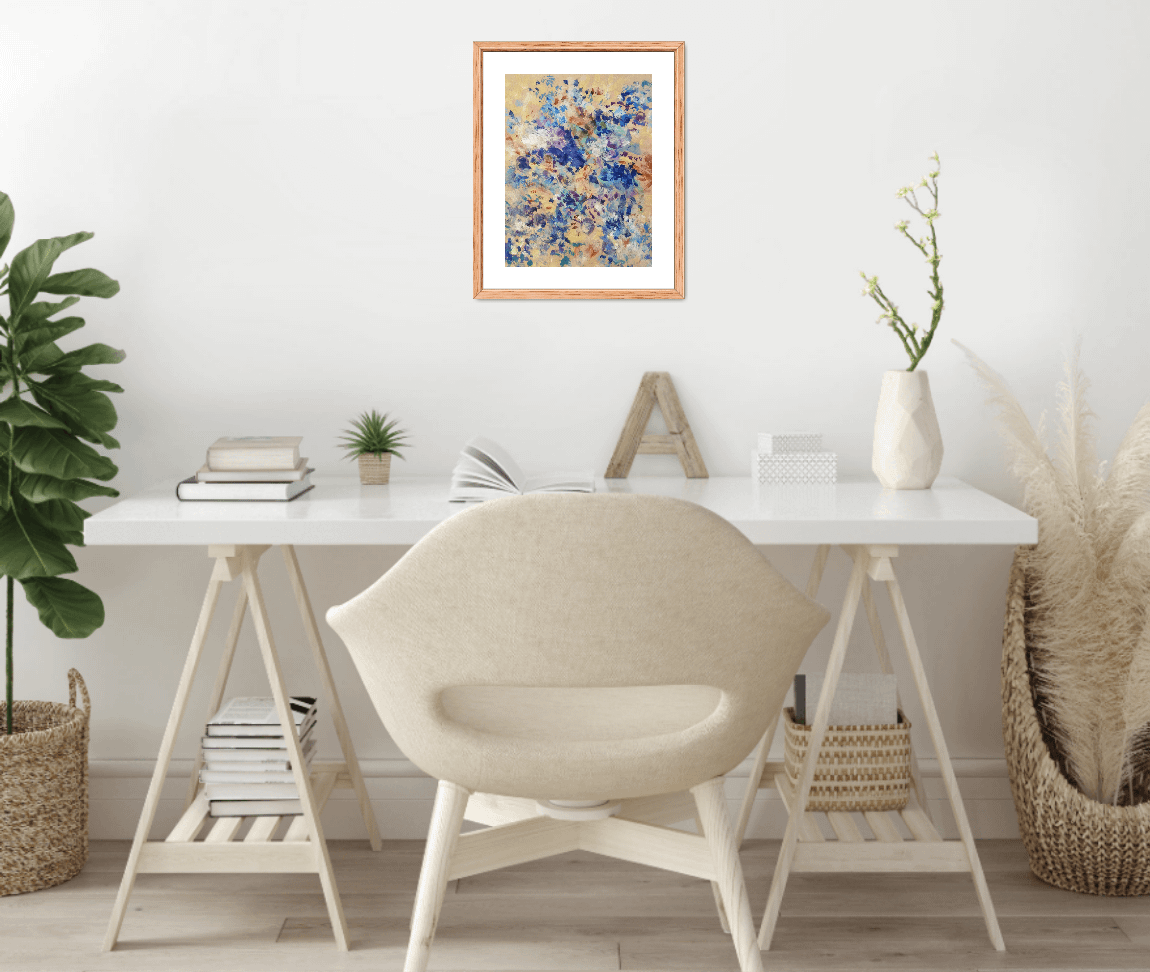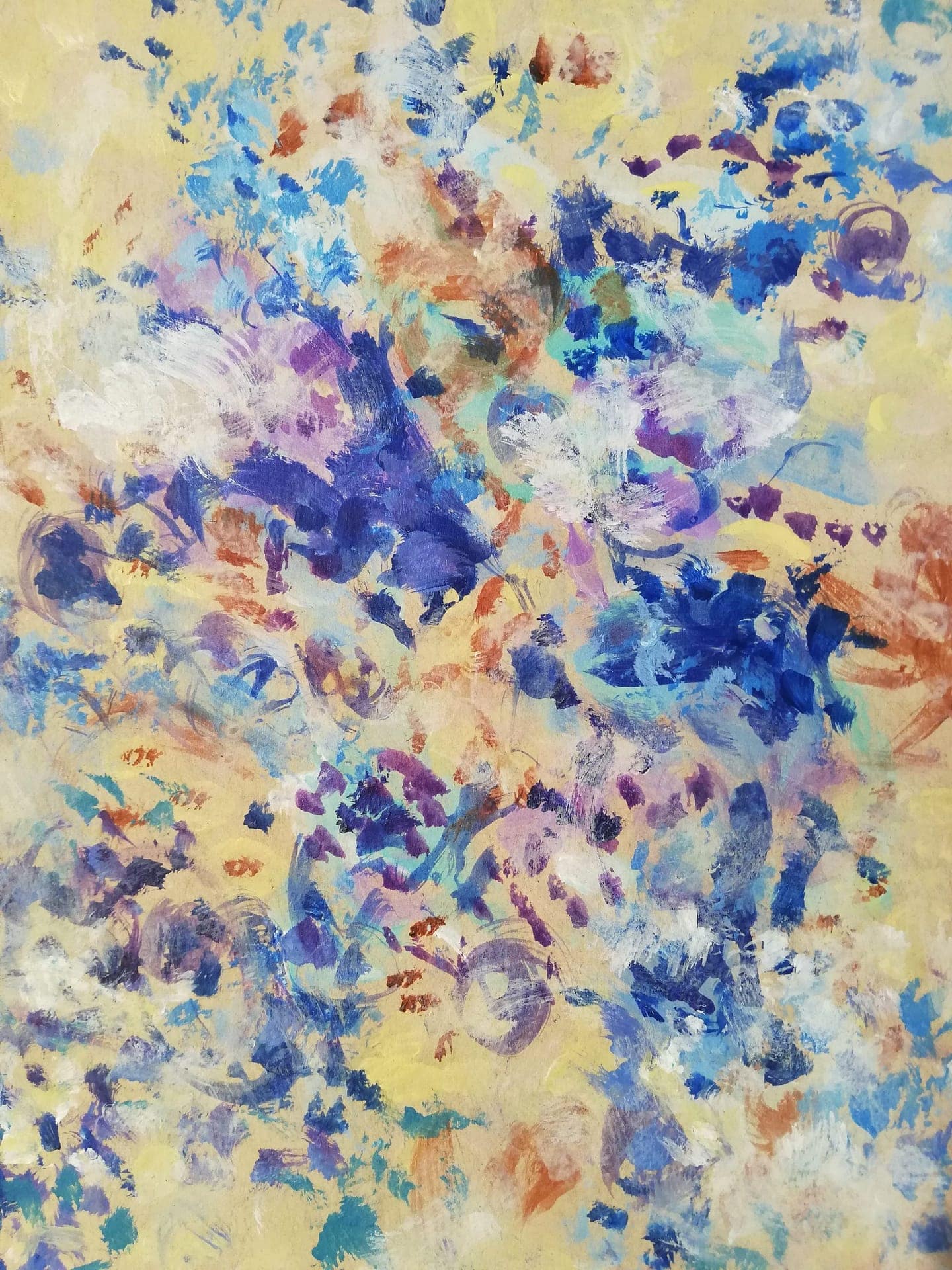Small and cute abstract painting in floral patterns on watercolour paper.