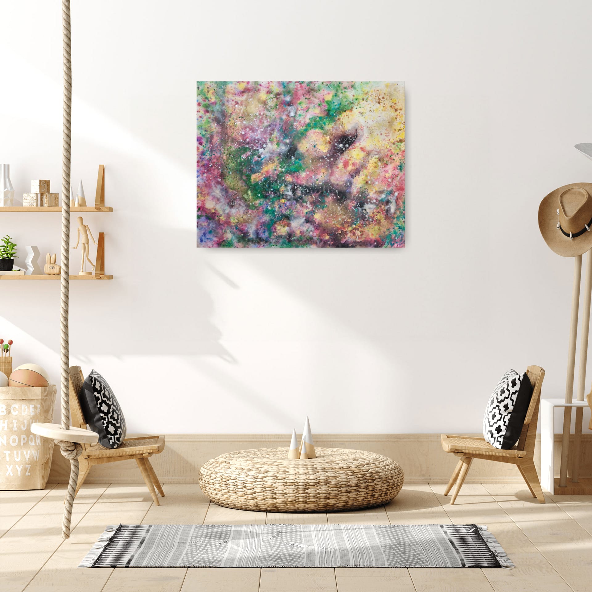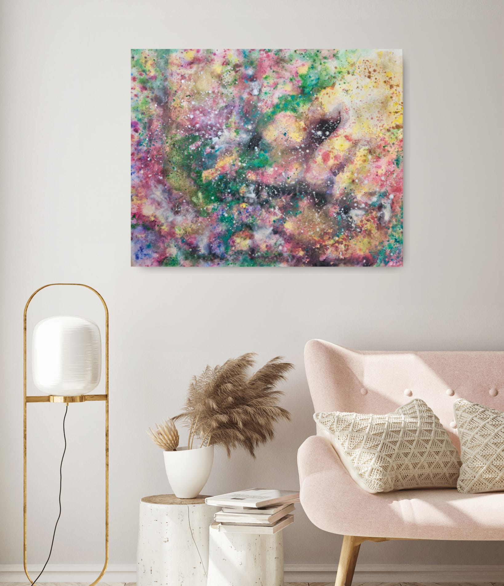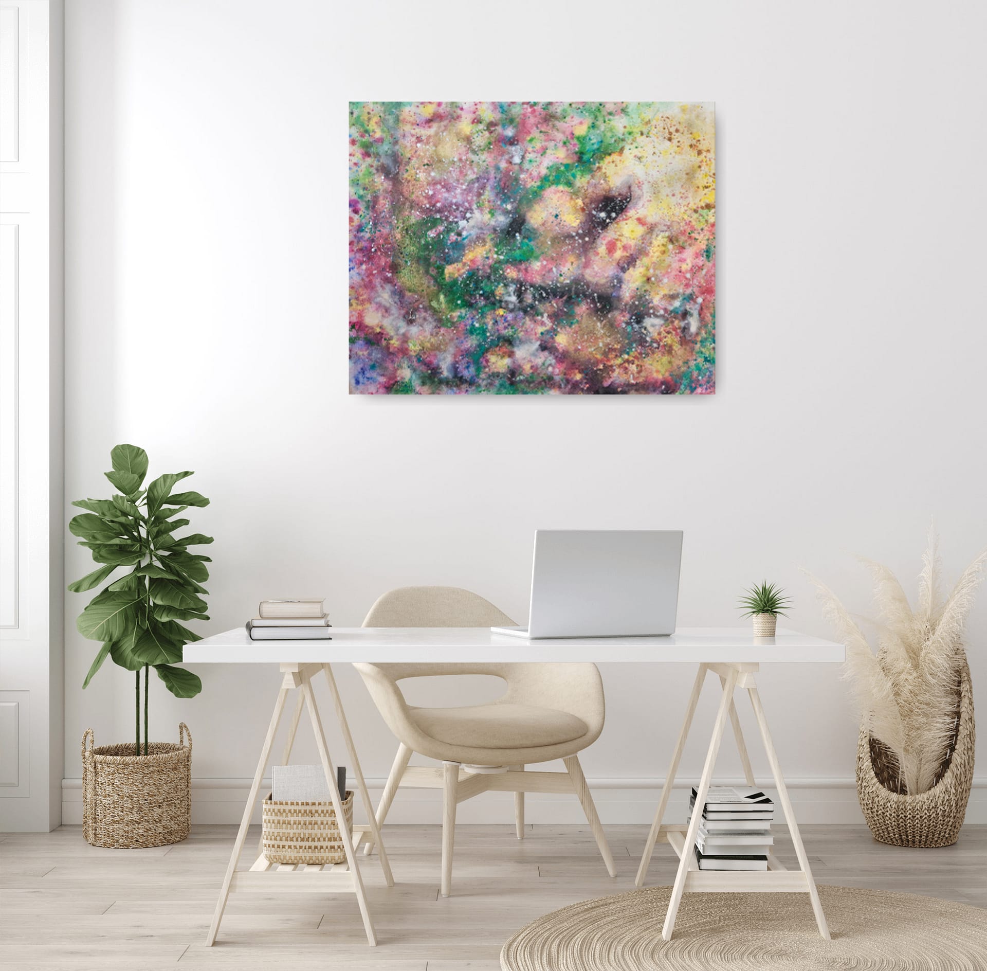 Painted on a gallery stretched canvas. Hanging hardware can be installed upon your request. Let me know how you’ll want to turn the painting (which side up) so I can install the hooks and sign the painting accordingly.
