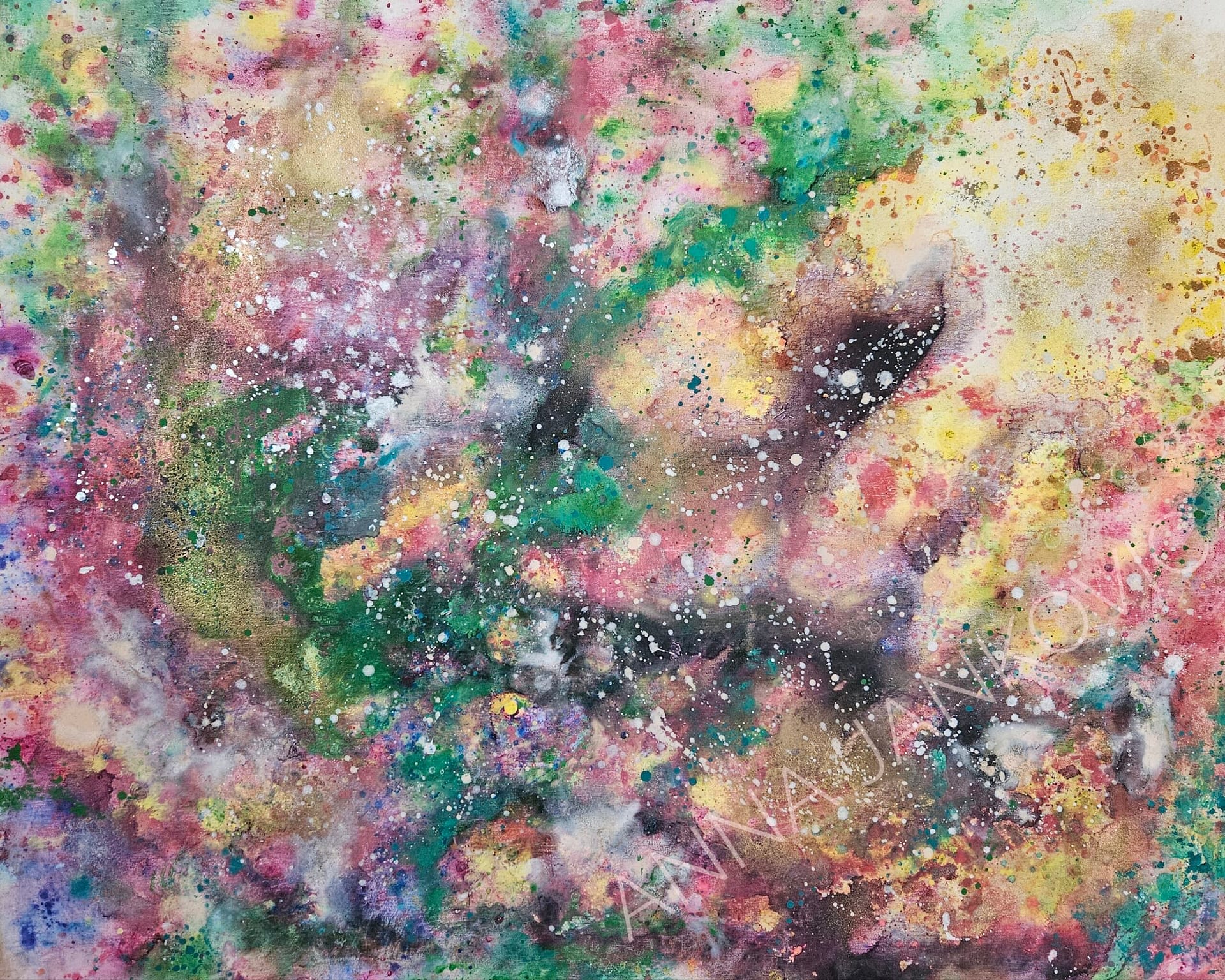 Material: canvas stretched on a wooden frame, acrylic paint, alcohol ink, golden paint, glossy varnish.
