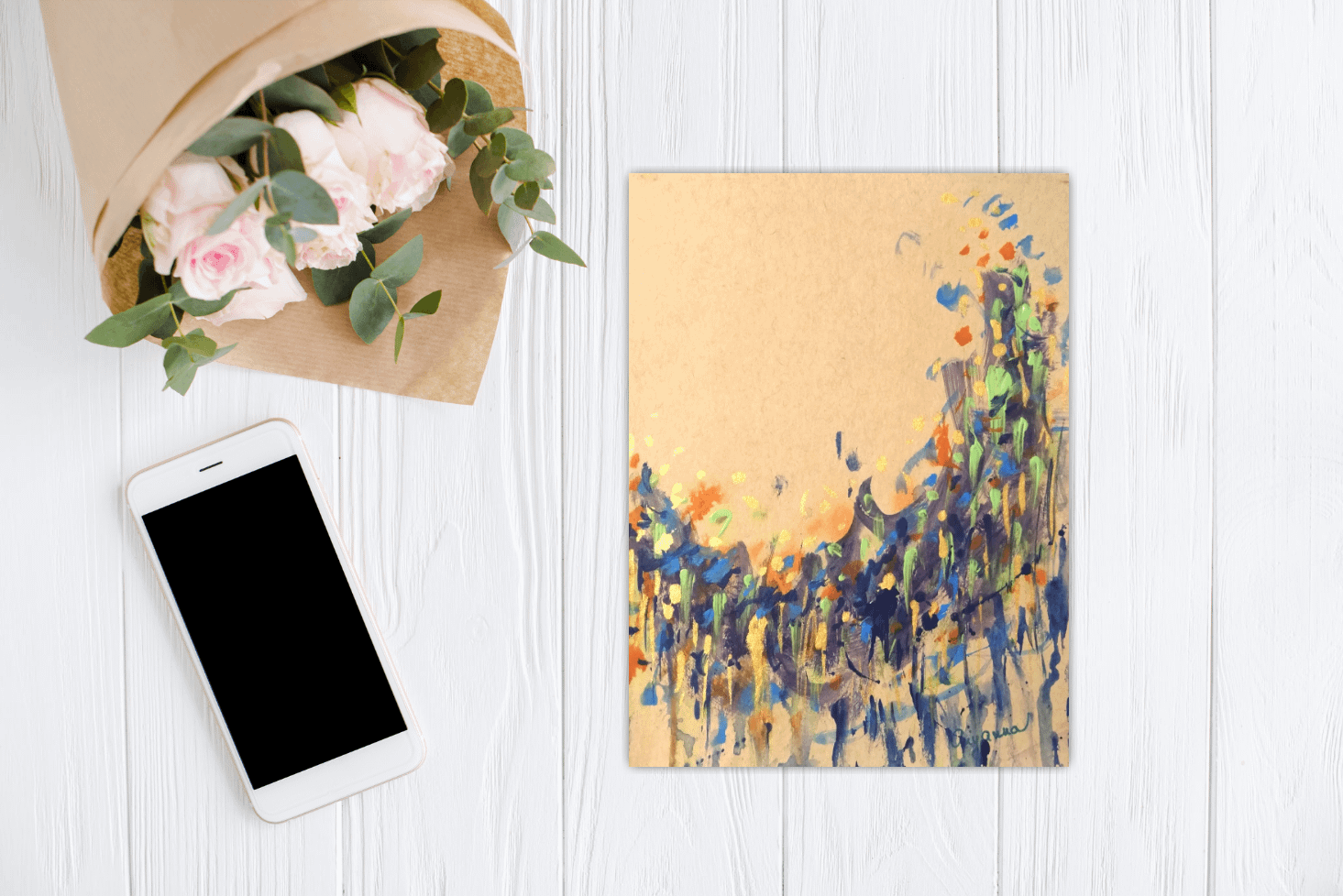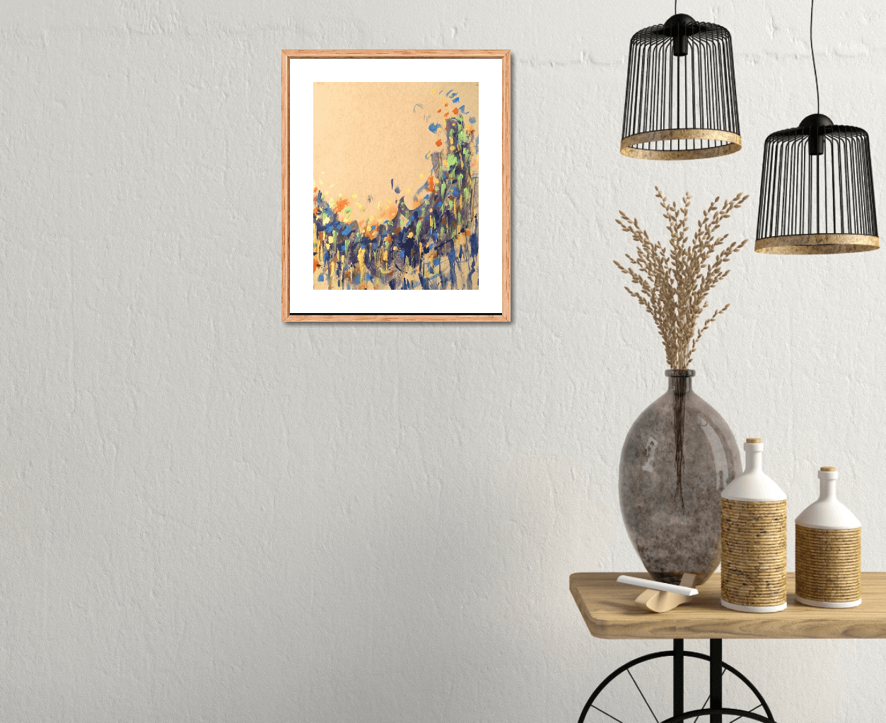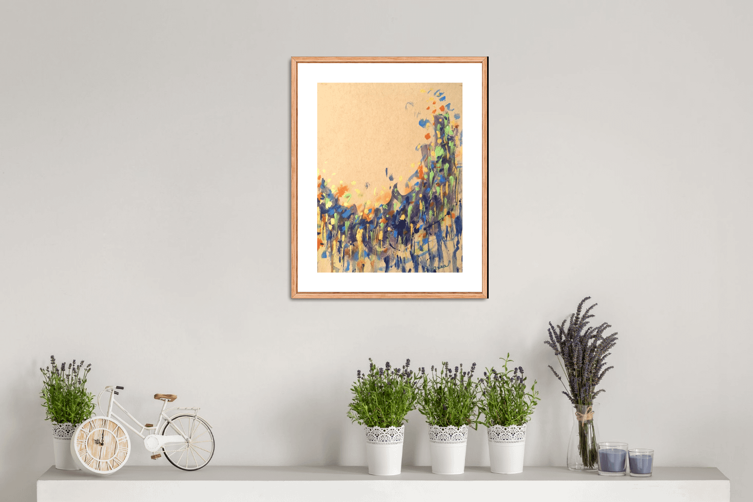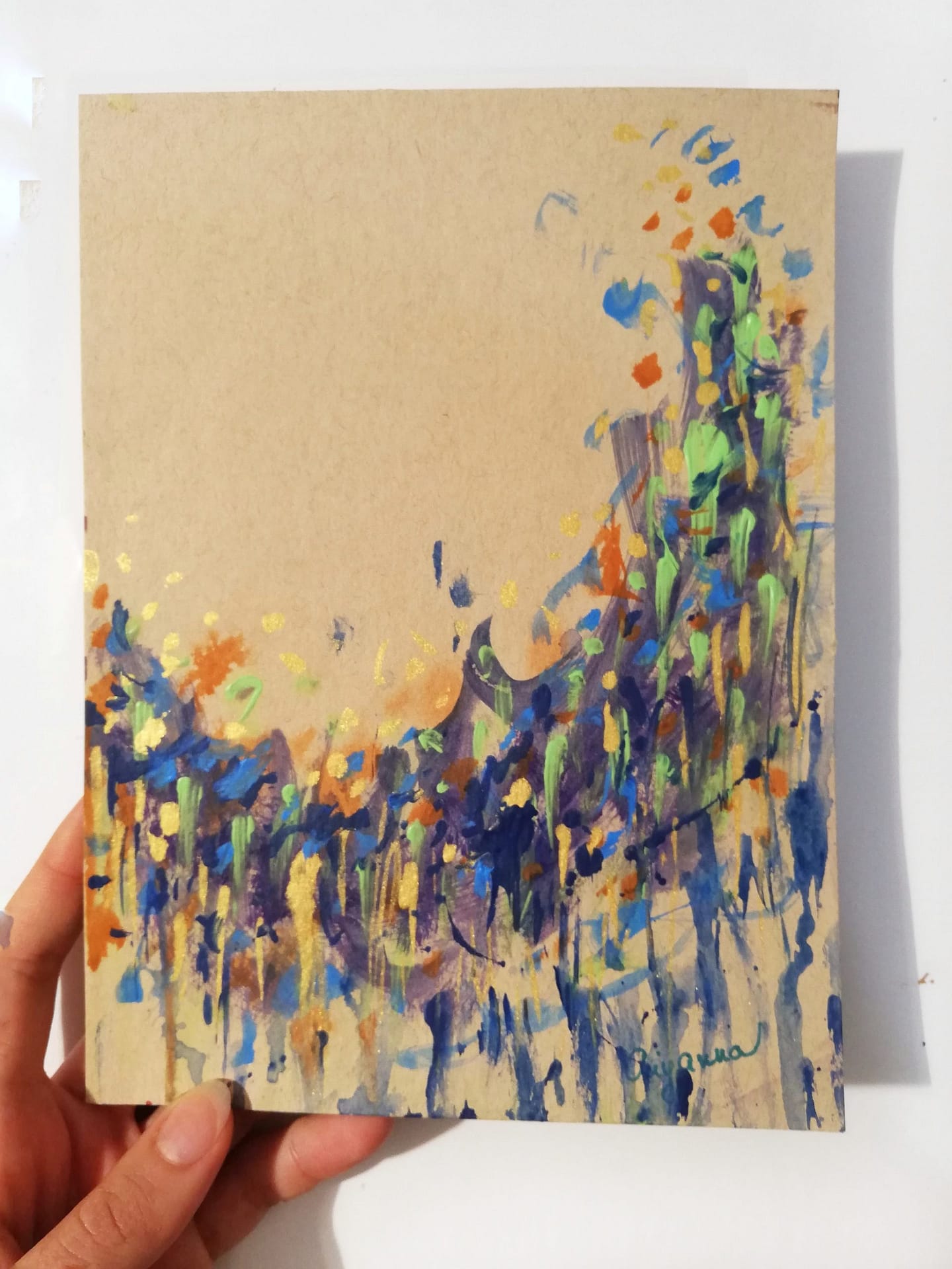 Painted with acrylic colours on a good quality, toned mixed media paper (300 g/m2). Varnished.