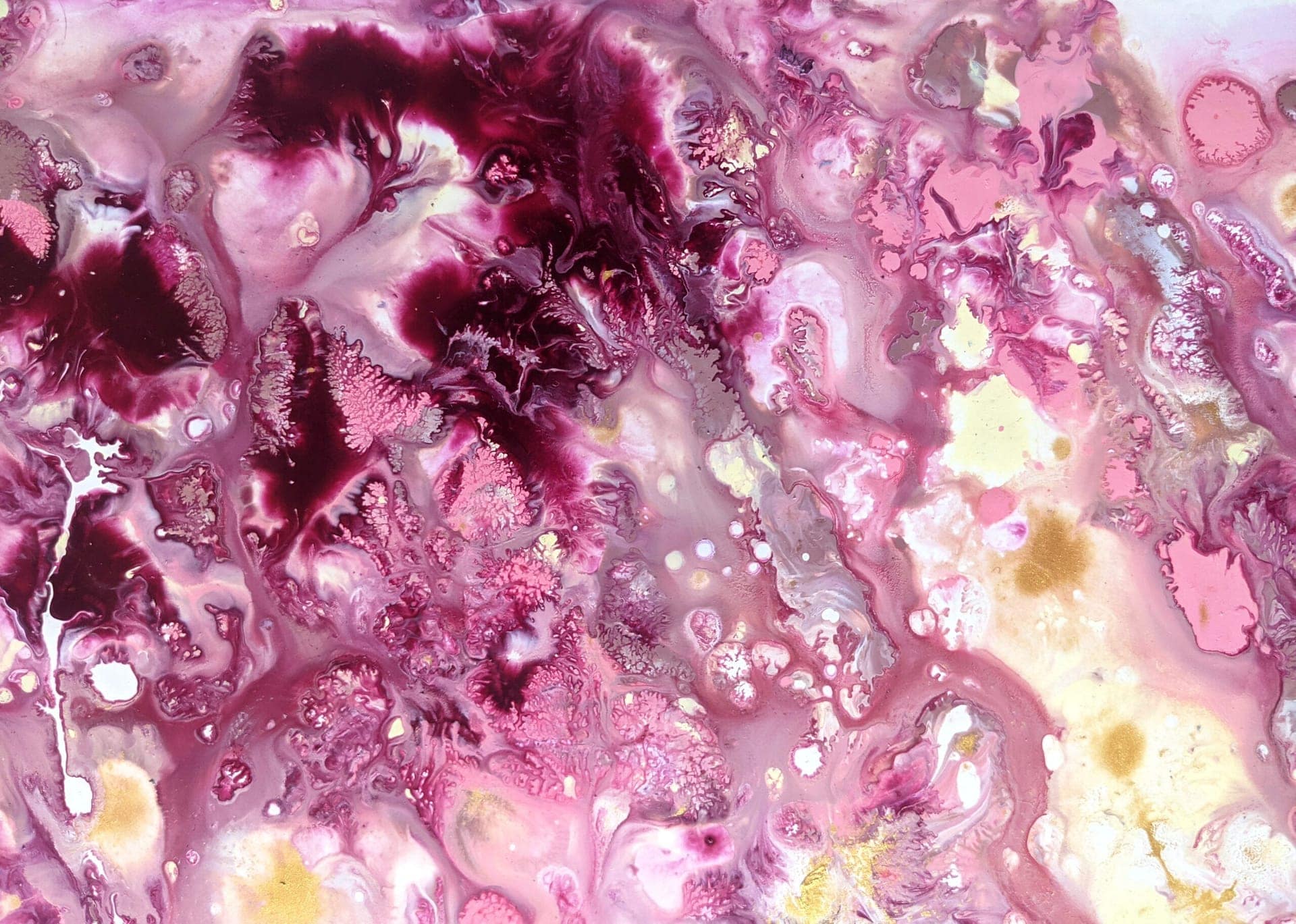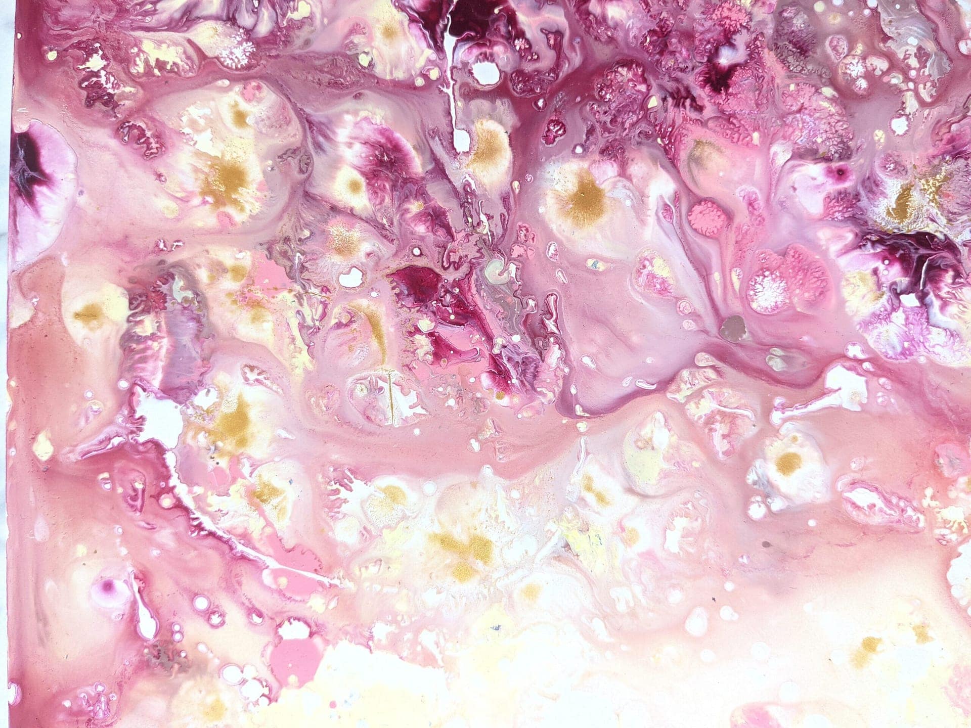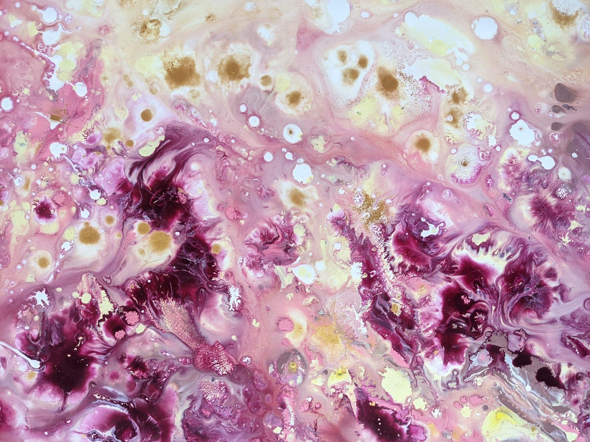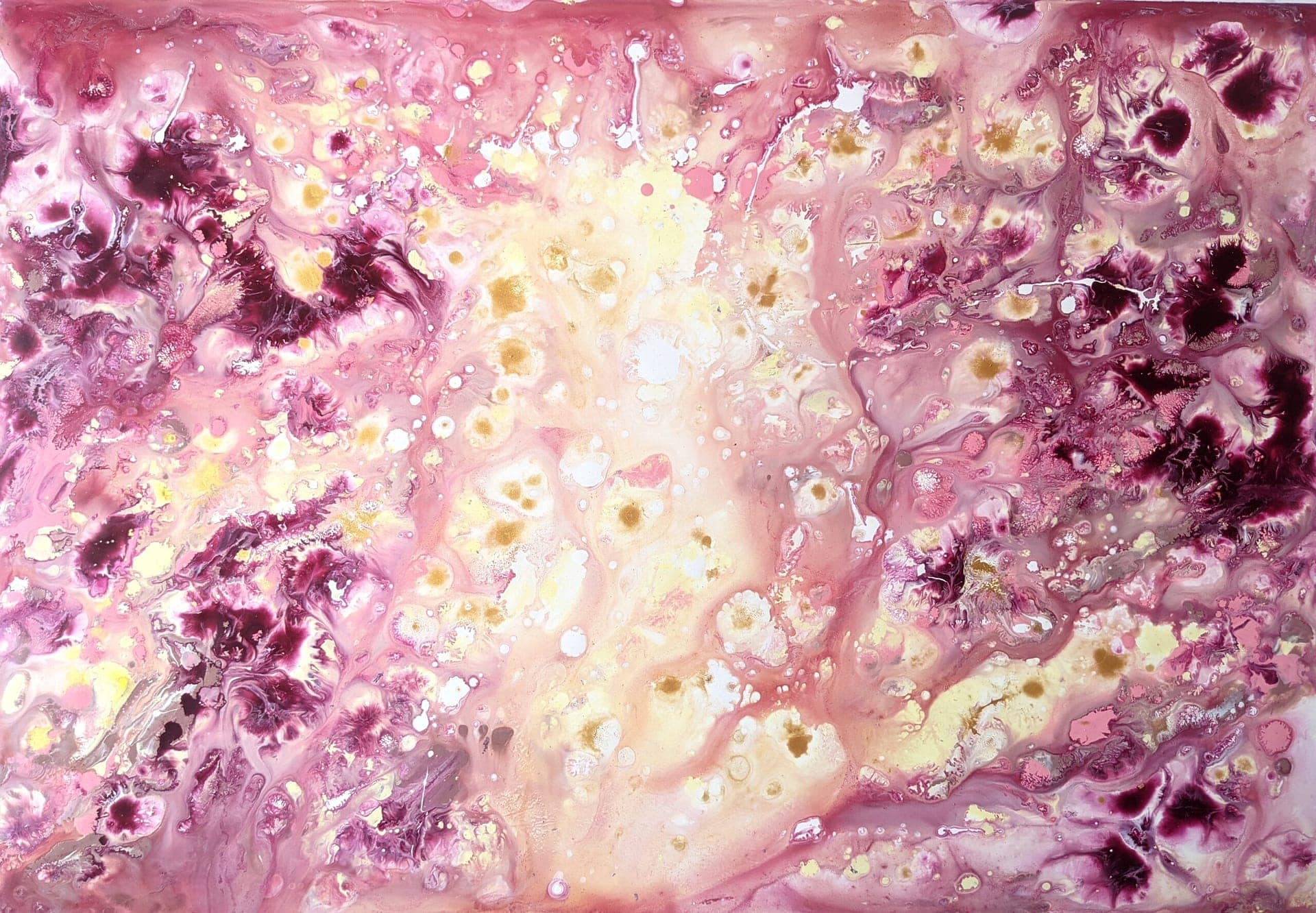 Purple, pink and gold fluid abstract painting. Original artwork on Yupo paper.