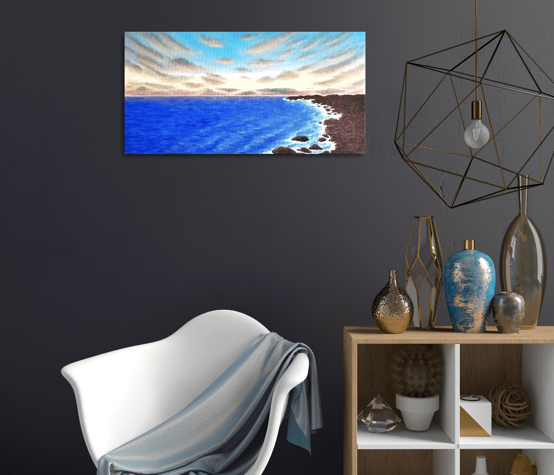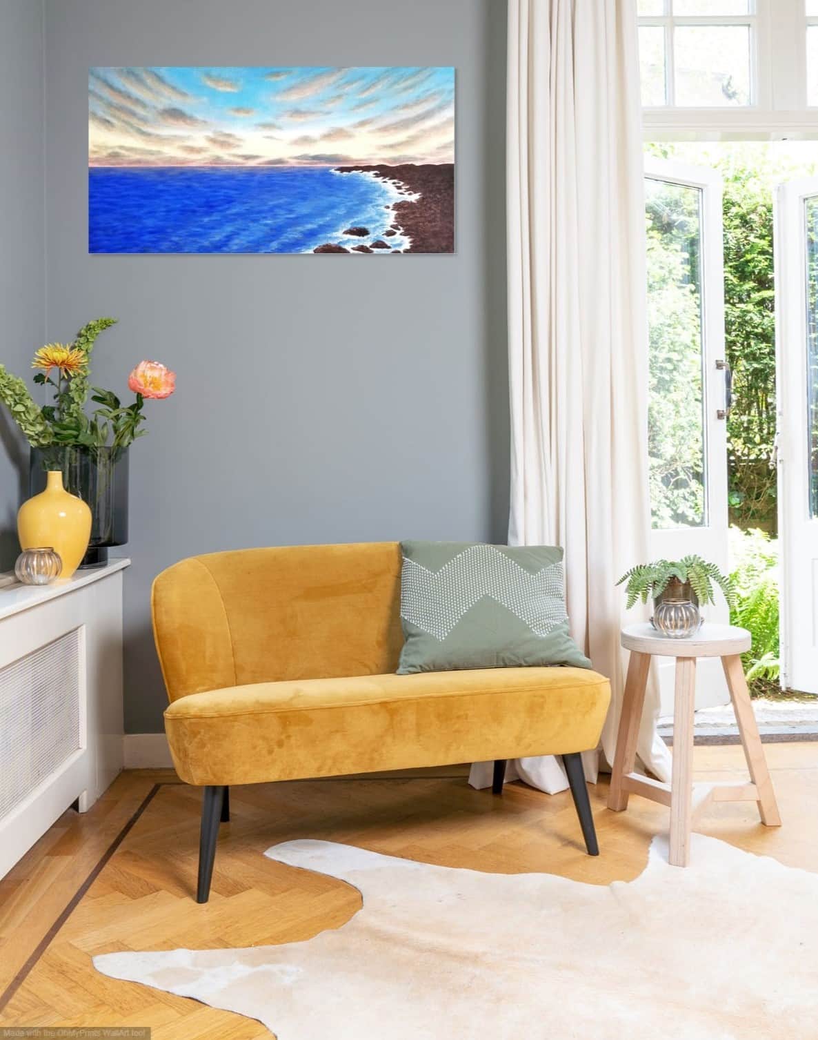 I painted these seascape series in hope, that they can provide a quiet moment in a rushed day, a moment to look through the painting into yourself, listen for a while, for that soft voice of intuition and guidance…