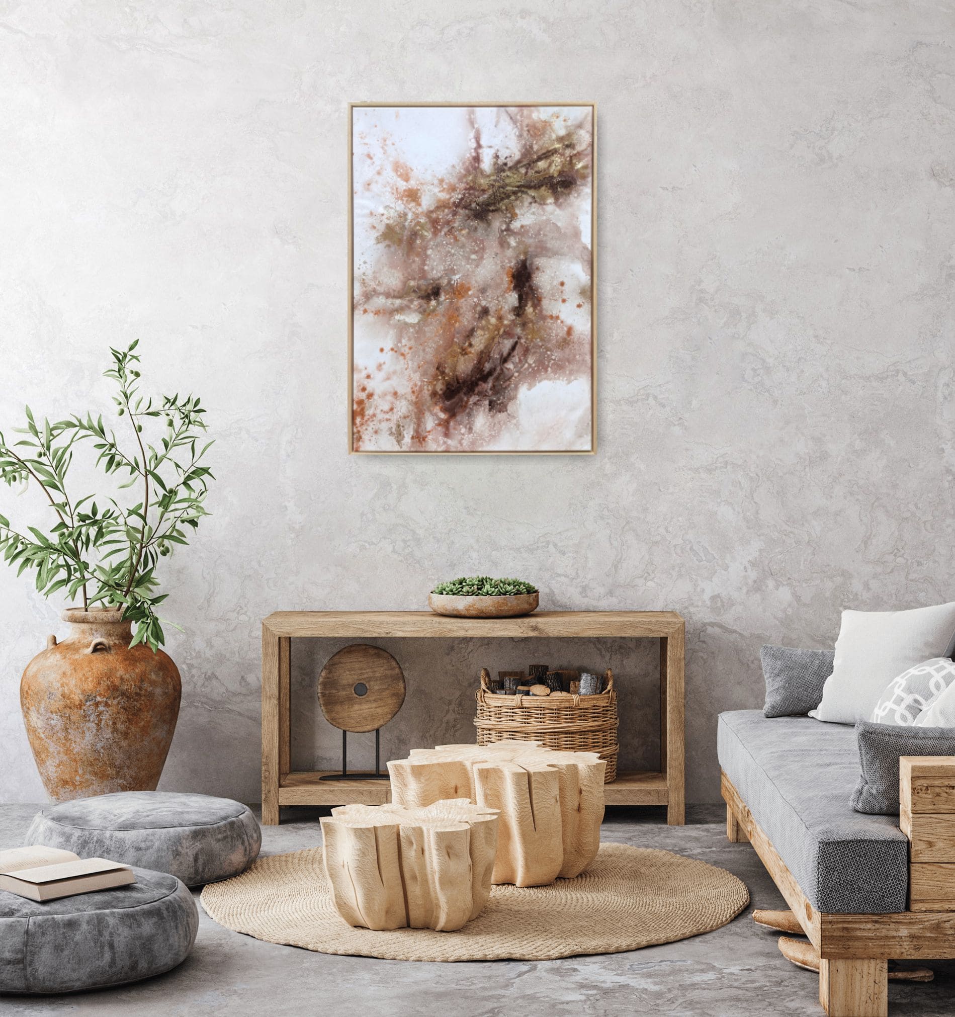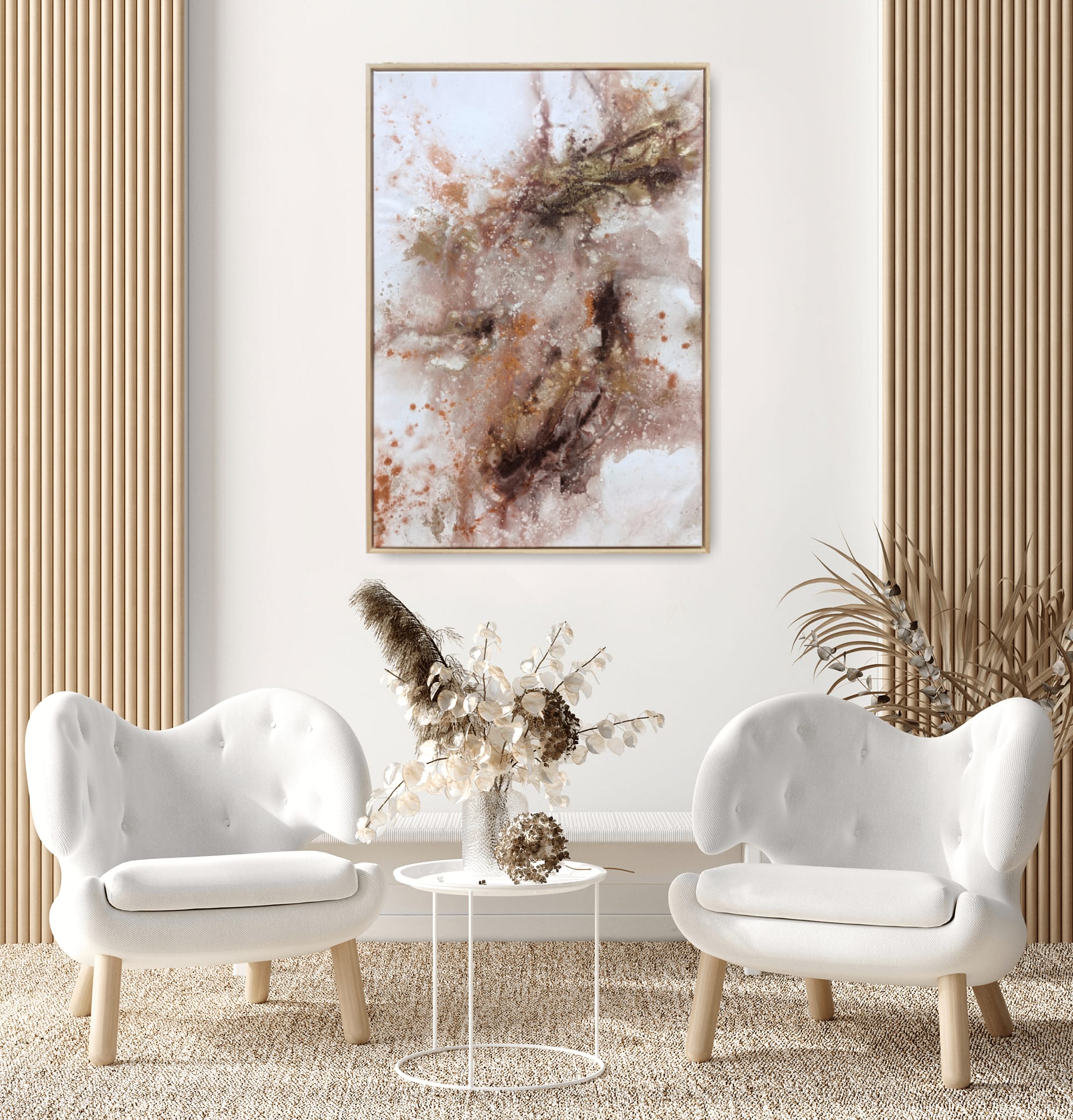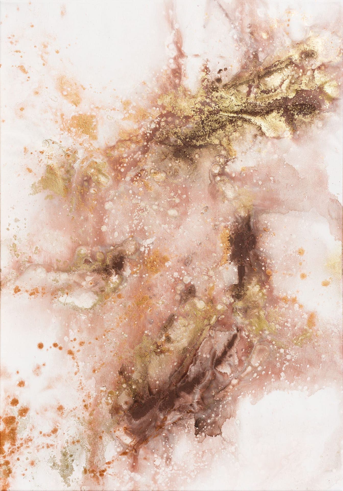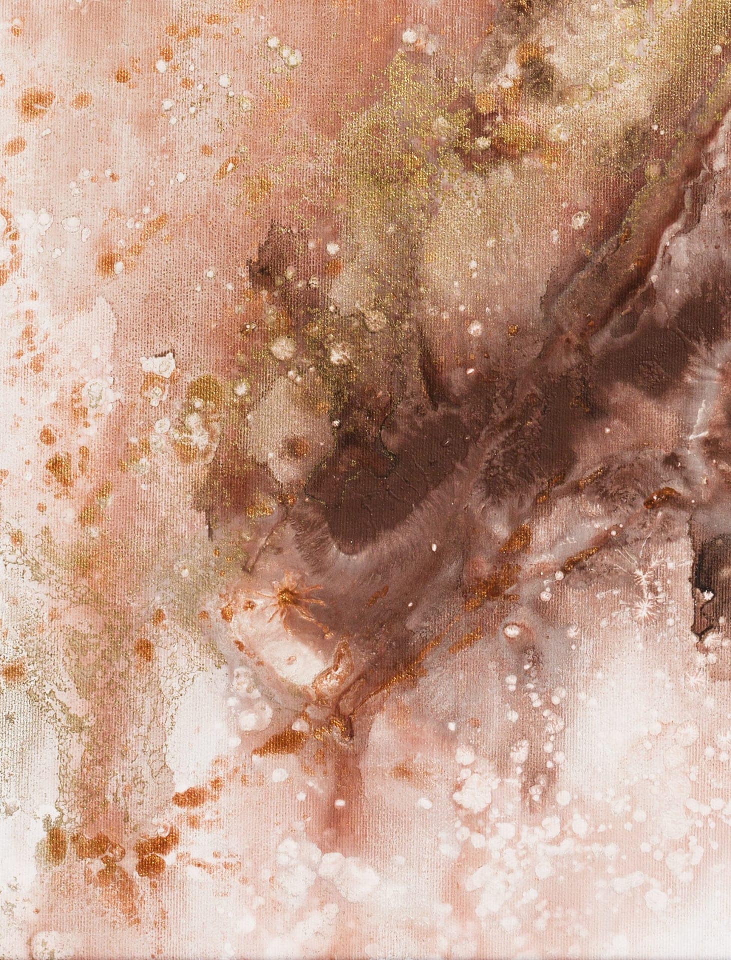 This collection of paintings was inspired by the heartfelt gratitude and love that I feel in my life. These paintings are carrying within themselves a warm image of a safe home and a beautiful feeling of loving and being loved. Brown tones for cozy, earthy warmth, pink color for love, and gold particles for the gratitude, that I feel for all that we have.
