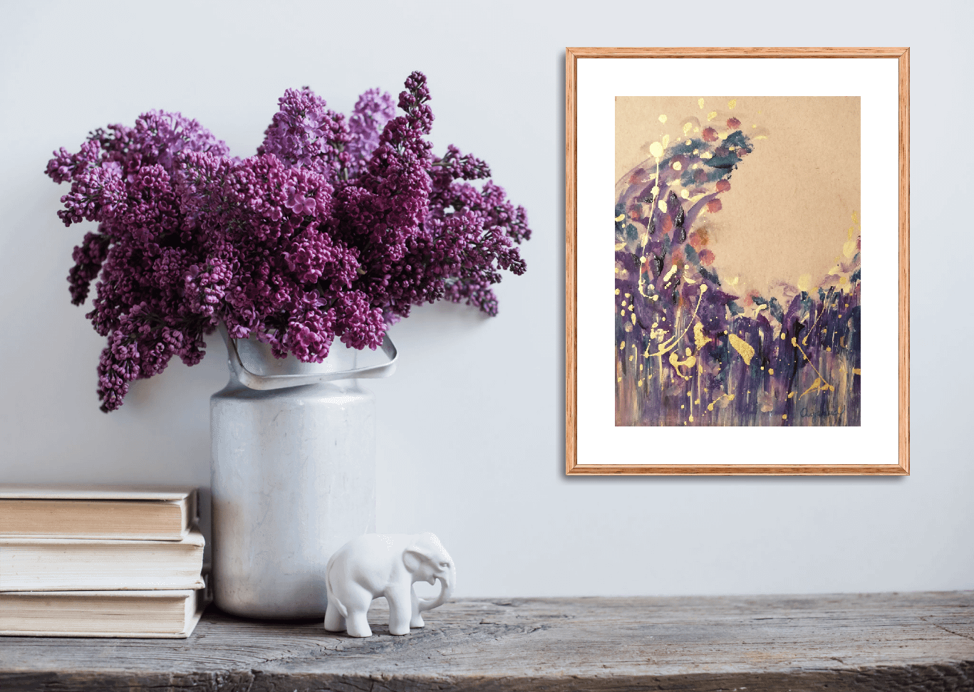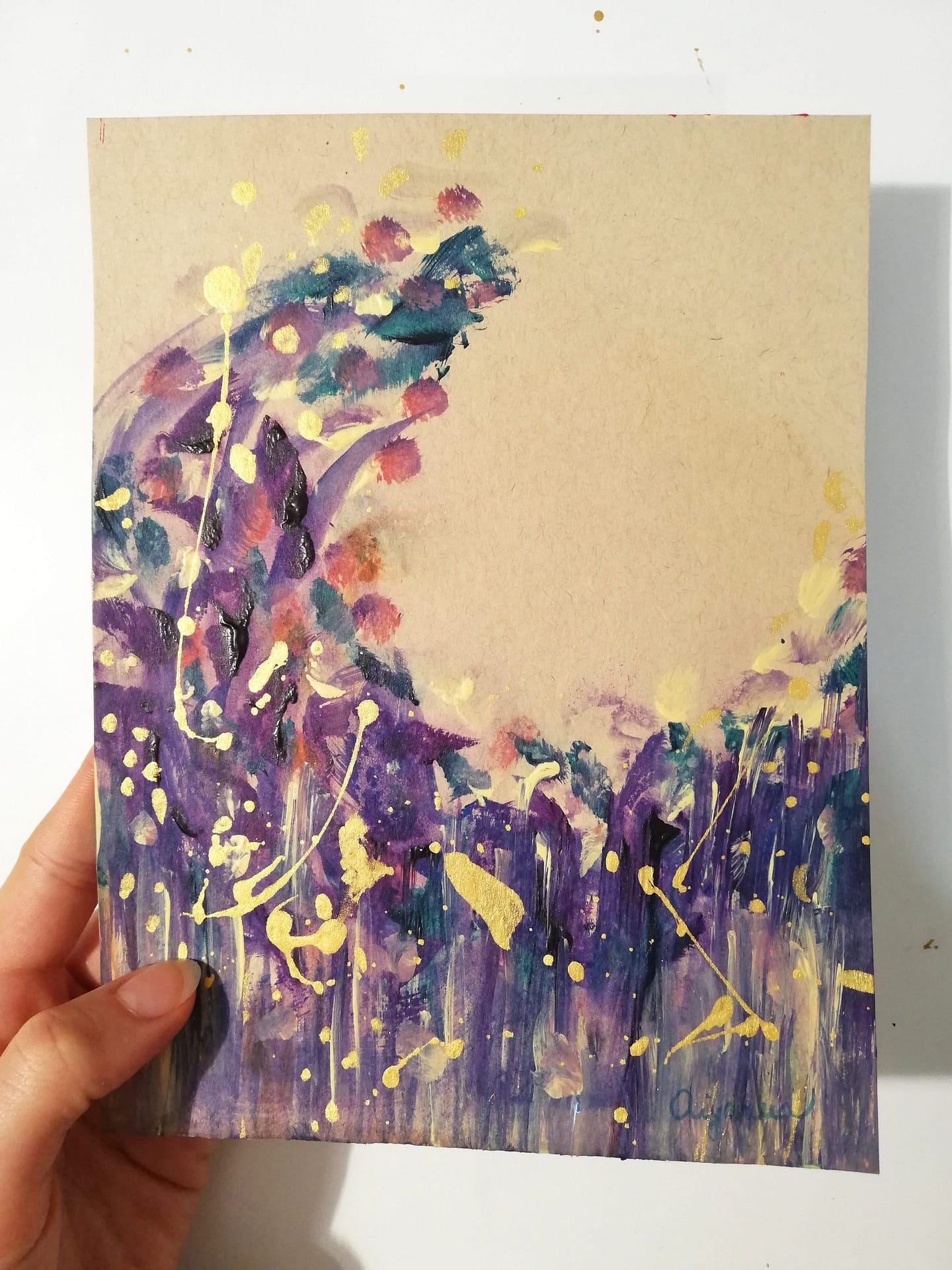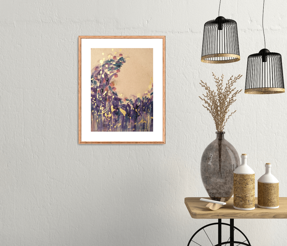 Purple moon – abstract painting on paper