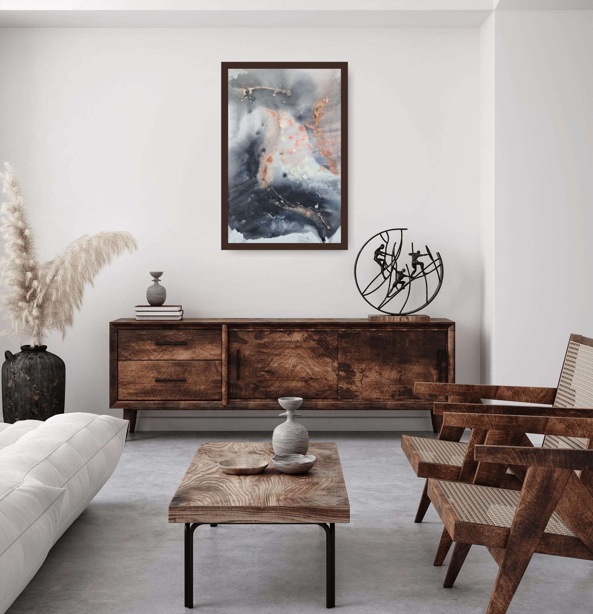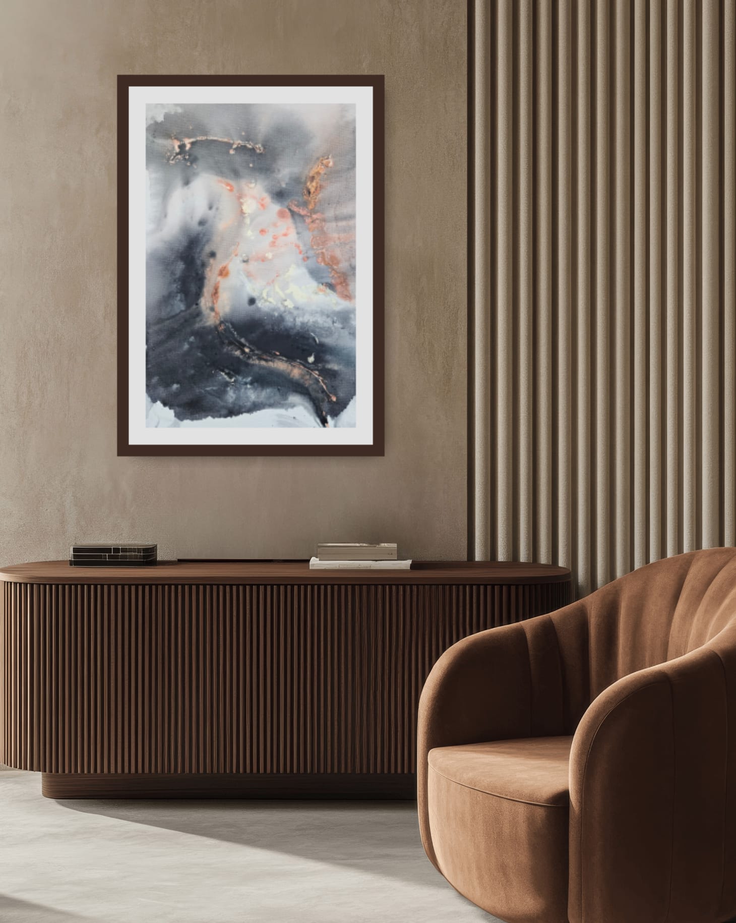 This modern abstract artwork adds gentle movement and depth to any space, especially when framed with a mat board. It evokes the subtle nature of fate through a sleek, contemporary design ideal for modern interiors.