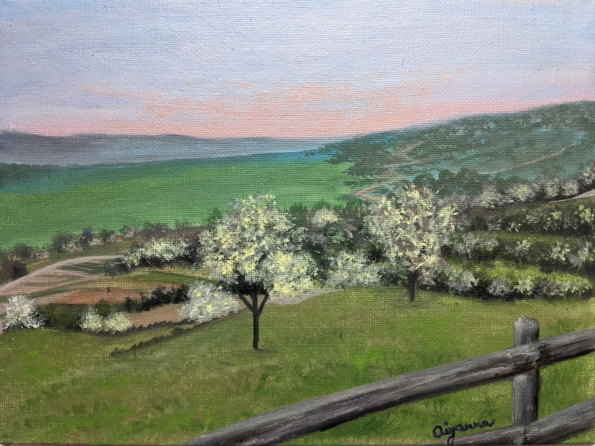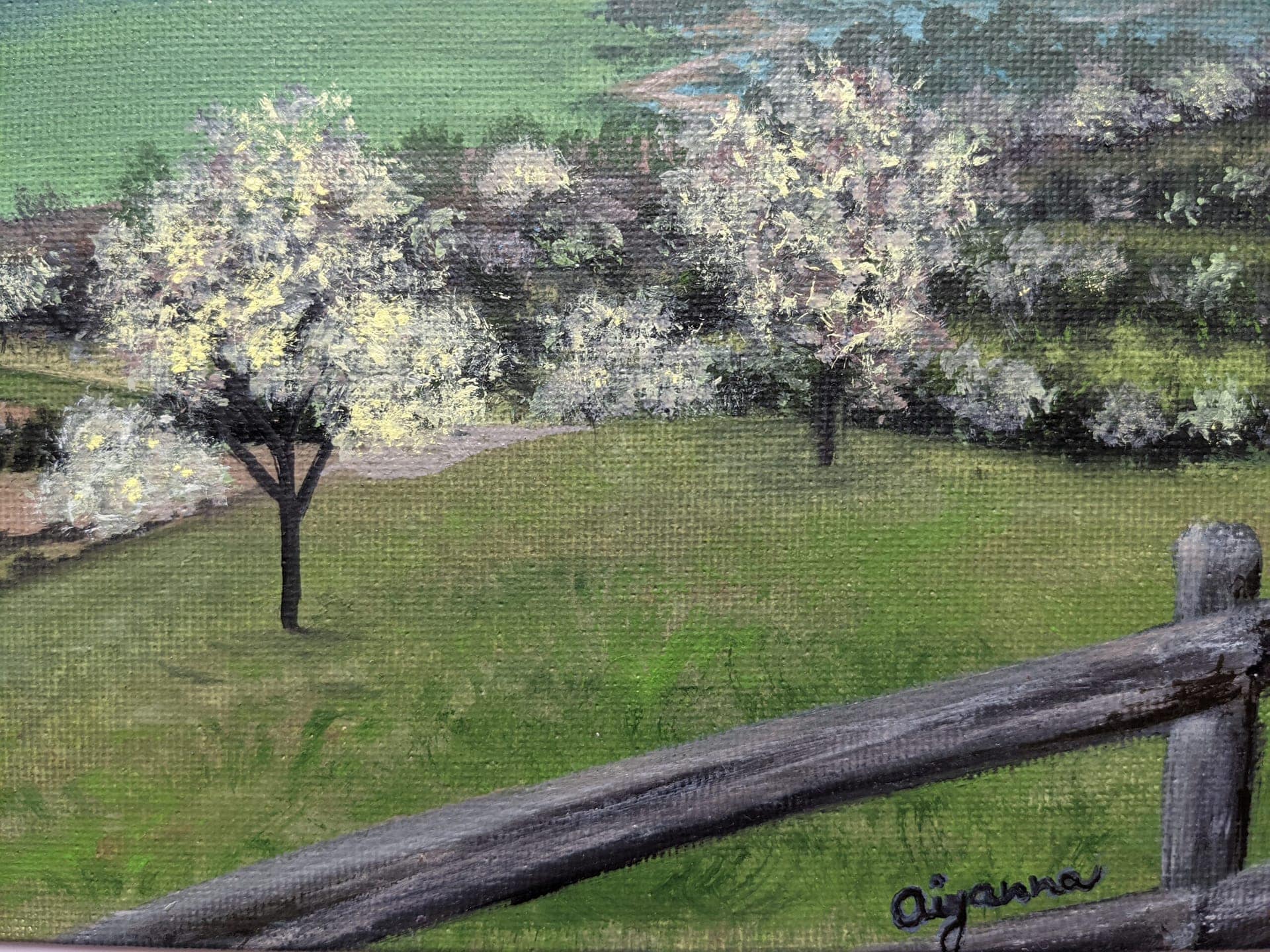 Technique: hand-painted artwork, palette knife and brushes, oil paint.