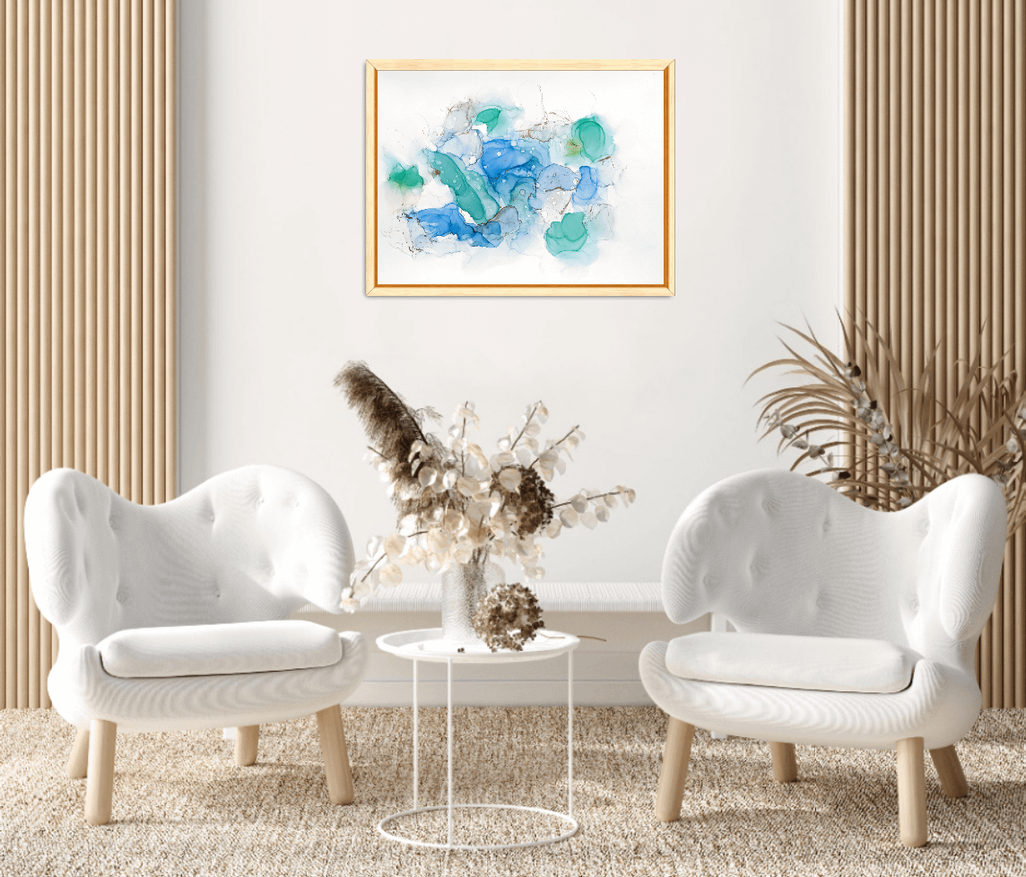Please, keep in mind, that due to the color settings of your monitor / pc / smartphone, the colors of the painting may be displayed slightly differently, than the physical painting. The visualization of the painting in the room may not show the real size of the artwork.