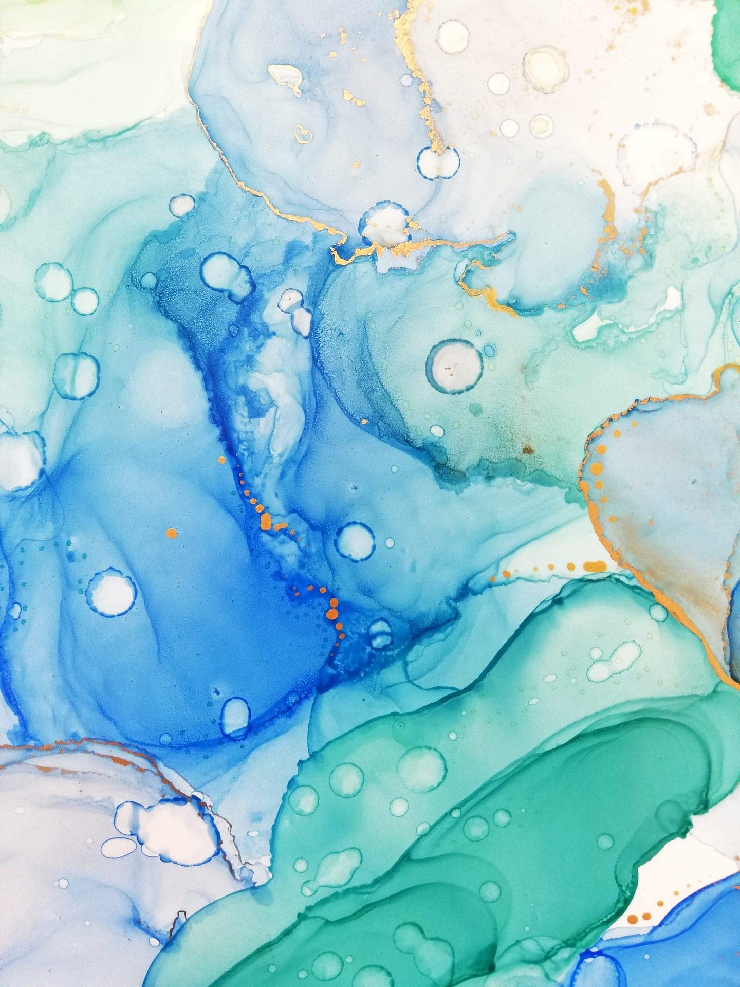 Alcohol ink creates beautiful flowing and lines on a special paper. Golden lines and particles shine and reflect the light in different positions.