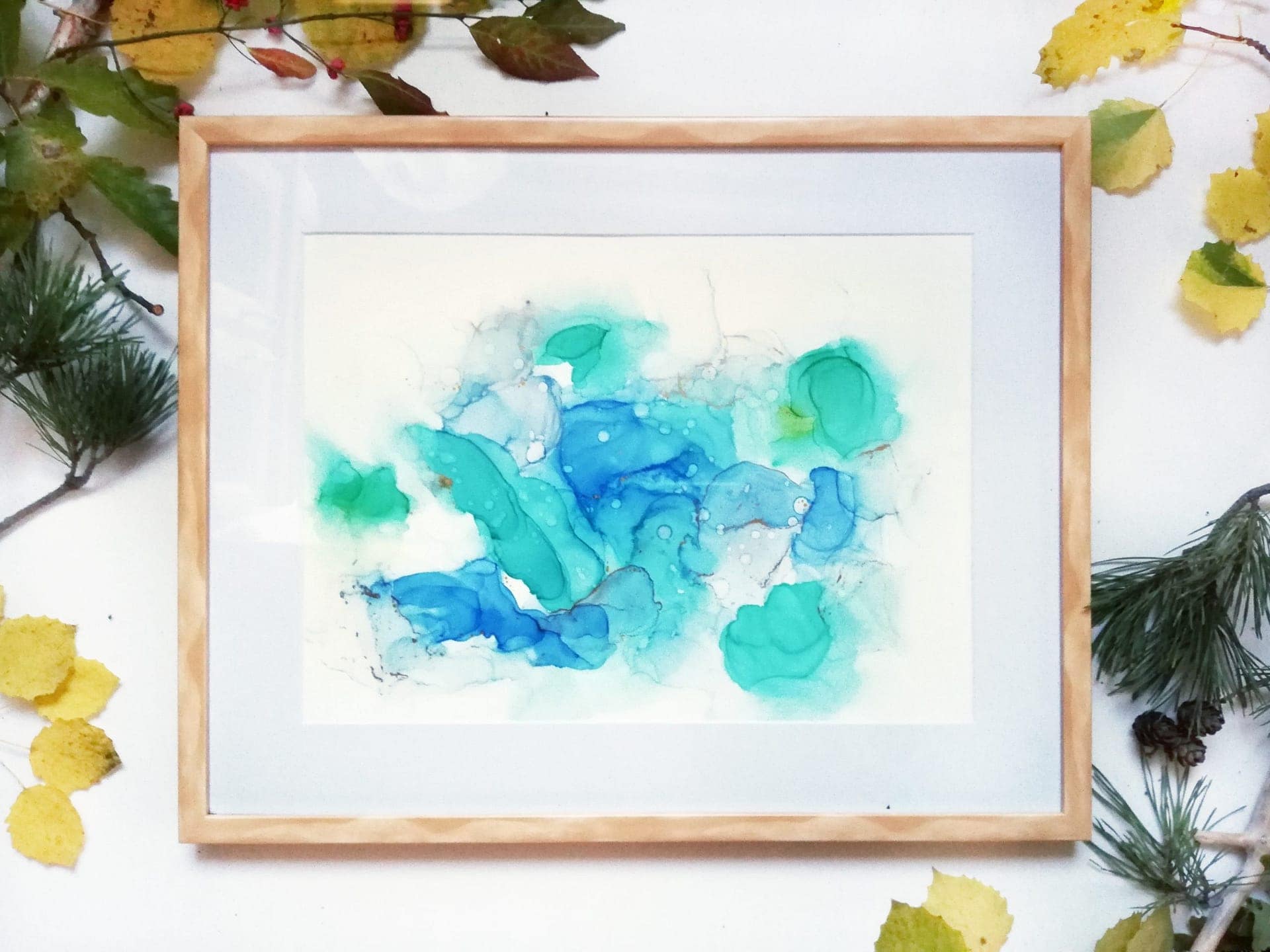 Material: alcohol inks, glossy varnish, Yupo paper.