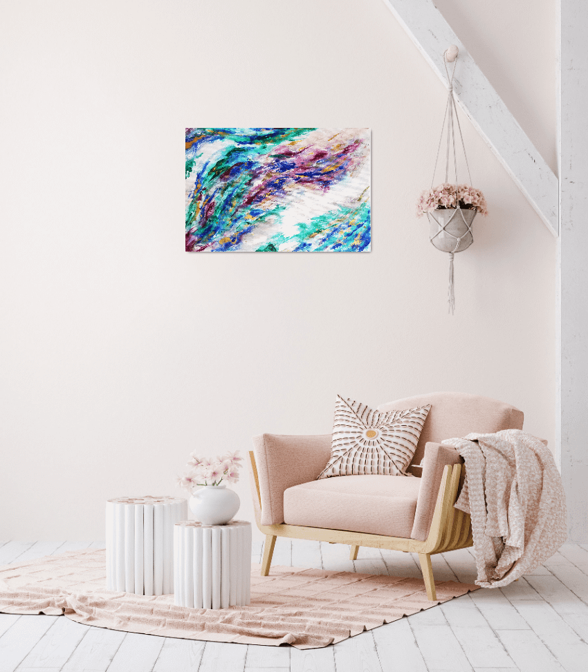 This abstract mixed media painting is varnished (2 layers) for protection against UV-rays and dust.